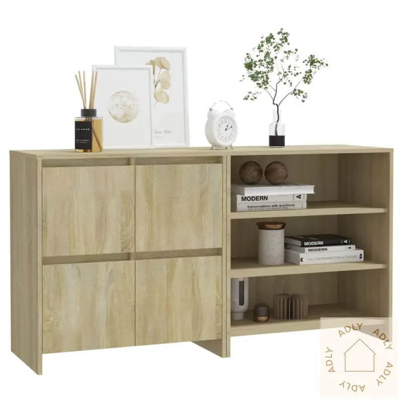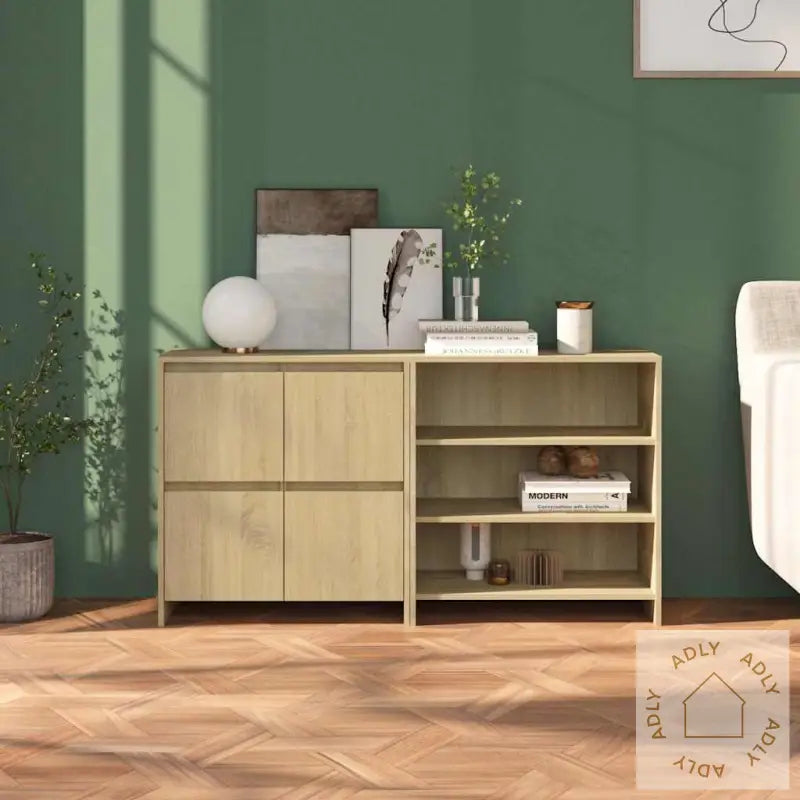 Skjenkene gir rikelig med lagringsplass til alt fra bordservise og bøker til andre daglige nødvendigheter, så du kan holde orden og ha alt innen rekkevidde. Den solide toppen i sonoma eik er flott til å vise frem dekorative elementer, fotorammer eller potteplanter, samtidig som materialet gir et stilig og tidløst uttrykk til hjemmet ditt. Både skjenken med hyller og den med dører er laget i holdbart, konstruert tre for lang levetid, noe som gjør dem til et trygt valg enten du trenger ekstra oppbevaring på kjøkkenet, i stuen eller på kontoret. Overflatene er enkle å tørke av med en fuktig klut, så de holder seg fine og rene over tid.