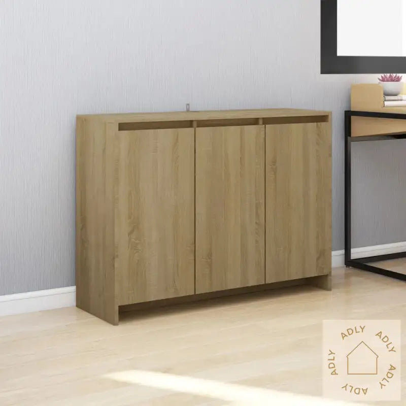 Denne skjenken i sonoma eik gir både stil og funksjonalitet til hjemmet ditt. Det elegante designet gjør møbelet til en flott detalj i innredningen, samtidig som det er praktisk for oppbevaring. Sideskapet er laget av slitesterkt, konstruert tre, noe som sikrer styrke og lang levetid — perfekt for deg som ønsker tidløse møbler til hjemmet.