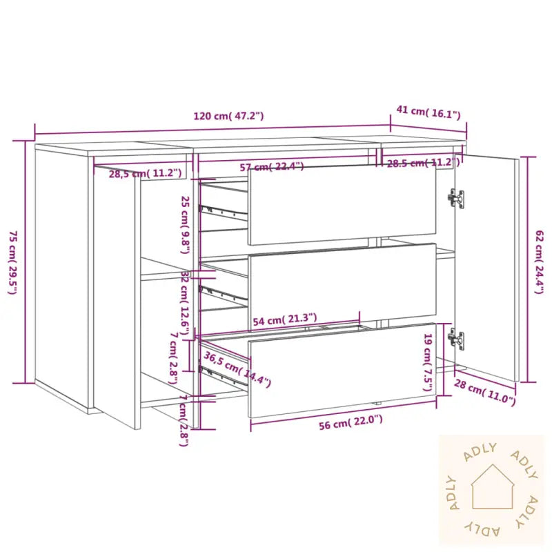 Skjenken måler 120 x 41 x 75 cm (L x B x H) og krever enkel montering. Rengjøringen er rask og grei – bare tørk av med en fuktig klut for å holde overflatene pene.