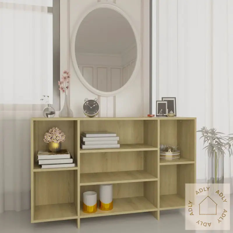 Denne nydelige skjenken med hyller har et enkelt og moderne design, noe som gjør den til et supert valg for deg som ønsker stilfulle møbler til hjemmet. Skjenken kommer i fargen sonoma eik, som gir et naturlig og tidløst uttrykk og passer like godt sammen med både klassisk og moderne innredning.