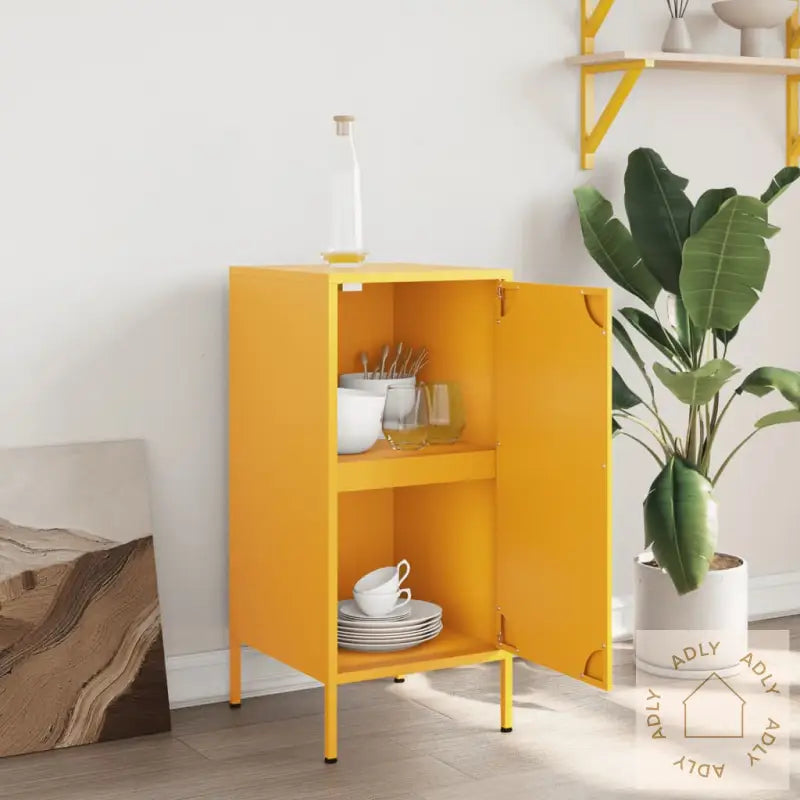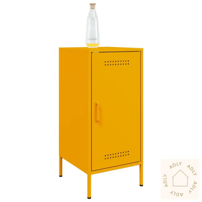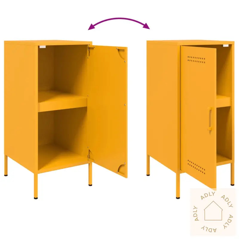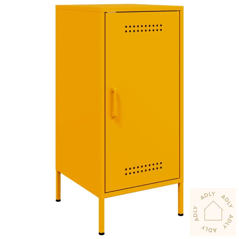 For å forhindre tippefare må produktet sikres med medfølgende festeanordning.Farge: SennepsgulMateriale: Kaldvalset stålMål: 36 x 39 x 79 cm (L x B x H)Maksimal lastekapasitet: 20 kg4 justerbare skrueføtter2 rom1 dørMontering kreves: JaLegal Documents: