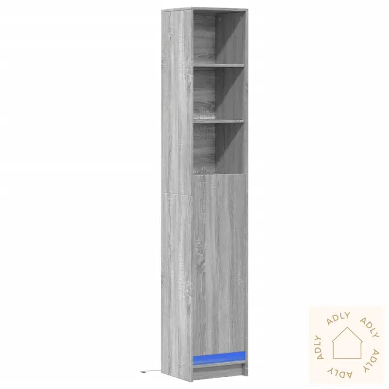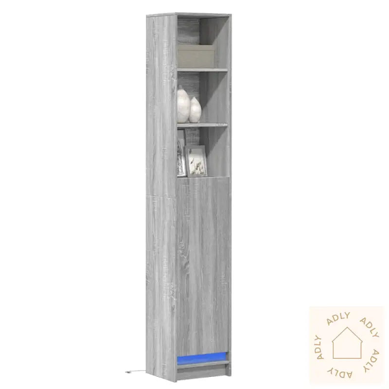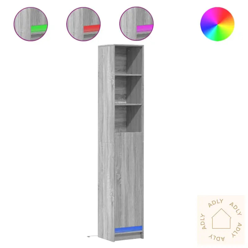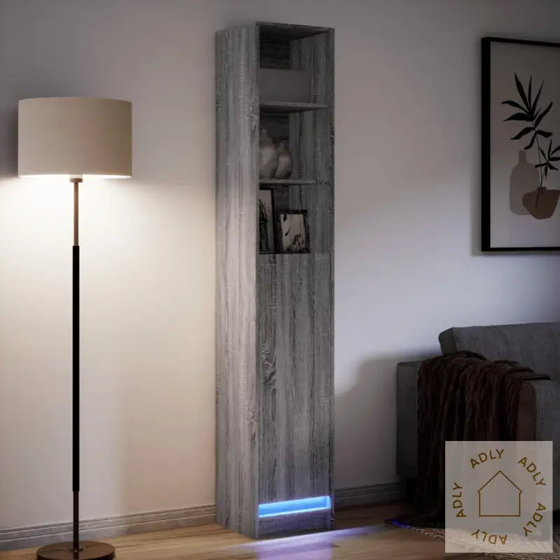 For sikker bruk bør skjenken alltid festes til veggen med den medfølgende festeanordningen, spesielt hvis det er barn i hjemmet.Farge: grå sonomaMateriale: konstruert treSamlet mål: 36 x 32,5 x 200 cm (L x B x H)Maksimal lastekapasitet (totalt): 80 kgMaksimal bæreevne per hylle: 20 kgLeveres med moderne RGB LED-lysKrever enkel monteringLegal Documents: