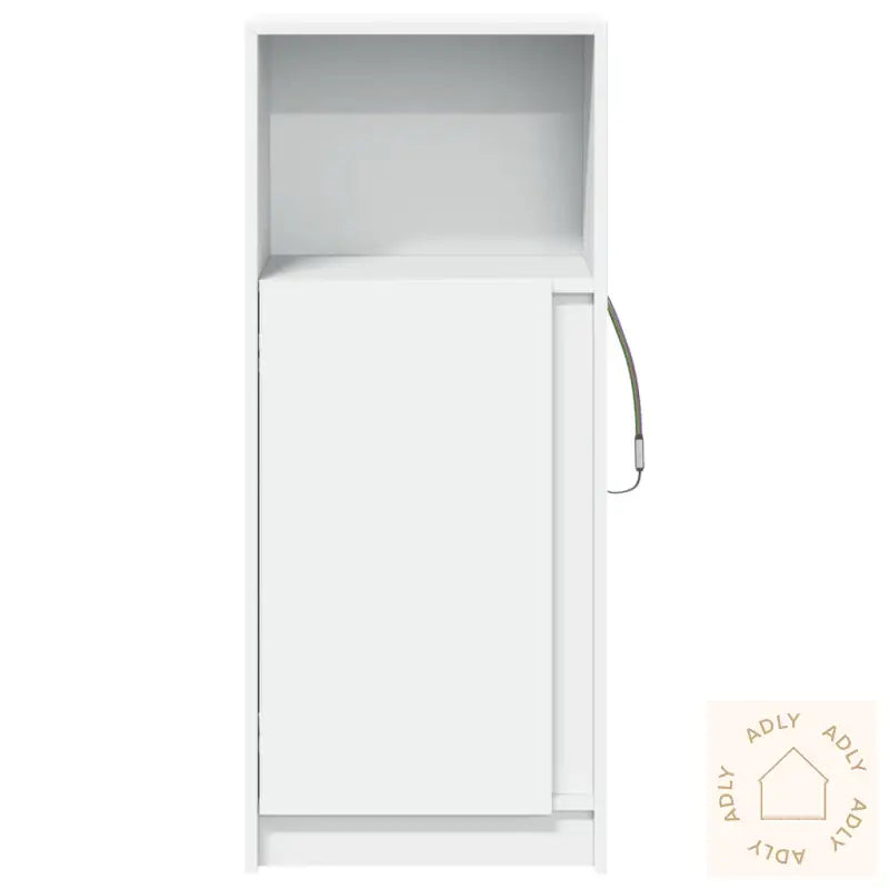 Slitesterkt materiale: Skjenken er laget av konstruert treverk av høy kvalitet med glatt overflate. Materialet gir både styrke, stabilitet og gjør møbelet motstandsdyktig mot fukt – perfekt for langvarig bruk.RGB LED-lys: Buffeen har innfelte RGB LED-lys som lar deg enkelt justere mellom ulike farger og lysinnstillinger for å matche humør eller anledninger. Med de mange justeringsmulighetene kan du velge om lyset skal skifte automatisk eller holde seg på én fargetone – det gir ekstra stemning og fremhever det moderne uttrykket.Rikelig med oppbevaringsplass: Det romslige oppbevaringsskapet gir god plass til å holde alt fra bøker, småelektronikk og andre hverdagslige ting organisert og lett tilgjengelig.Visningsfunksjon: Topplaten i solid konstruert tre og glass gjør det ideelt å stille ut favorittbilder, dekorative gjenstander eller grønne planter – perfekt når du vil personliggjøre interiøret ditt.Praktiske dører: Sideskapene har dører som beskytter dine saker mot støv og holder rommet ryddig og oversiktlig.Godt å vite: