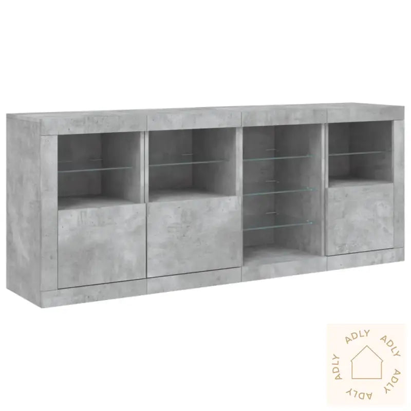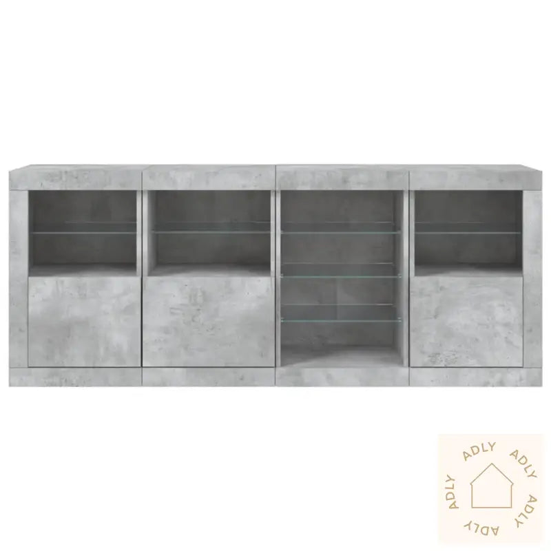 Av sikkerhetshensyn må produktet alltid festes til veggen med den medfølgende festeanordningen for å unngå risiko for at det velter.Farge: betonggråMaterialer: konstruert tre, glassSamlet mål: 164 x 37 x 67 cm (L x B x H)Mål (hver): 41 x 37 x 67 cm (L x B x H)Enkel montering krevesLeveransen inneholder:4 x skjenkerLegal Documents: