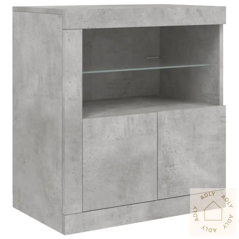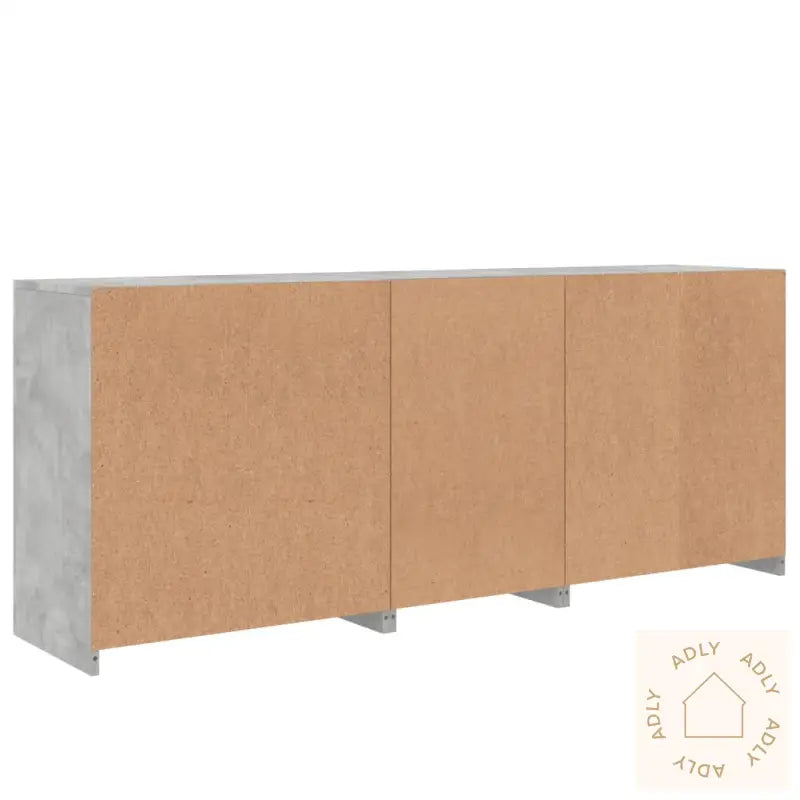 Skapet er laget av slitesterkt konstruert tre – kjent for høy kvalitet, solid stabilitet og lang levetid. Overflaten er glatt og enkel å rengjøre, i tillegg til at materialet er motstandsdyktig mot fuktighet.De integrerte, livlige RGB LED-lysene lar deg tilpasse stemningen med et bredt spekter av farger og funksjoner. Du kan stille inn lyset slik du ønsker, eller la fargene endre seg automatisk for en ekstra dynamisk effekt. Dette gir skjenken et futuristisk preg samtidig som det fremhever moderne møbler til hjemmet.Både gjemt og synlig oppbevaring gjør det enkelt å holde alt fra servise til småting pent organisert. Med generous lagringsplass er det plass til både nødvendigheter og dekorative elementer.Den robuste toppen er perfekt for å fremheve dine favoritter – enten det er et vakkert bilde, unike pyntegjenstander eller en potteplante som frisker opp rommet.De praktiske dørene beskytter eiendelene dine mot støv, samtidig som det gir et ryddig og stilrent uttrykk.Godt å vite: