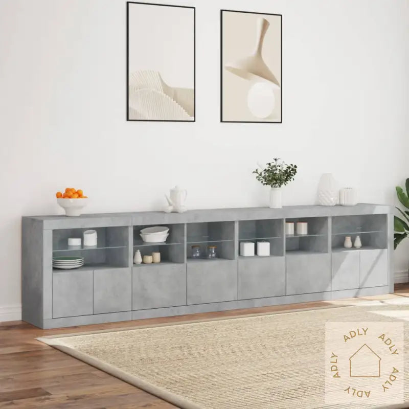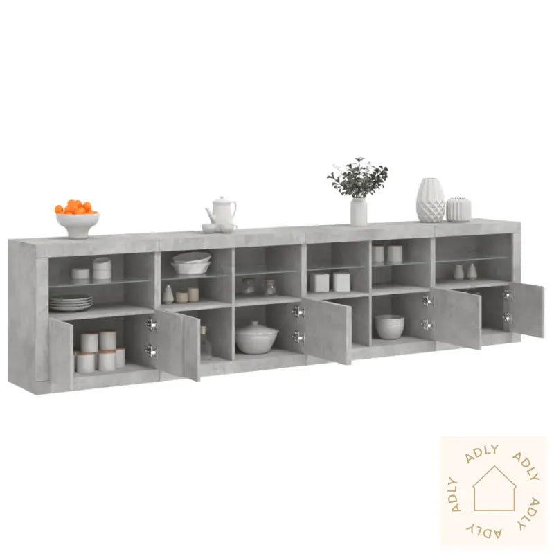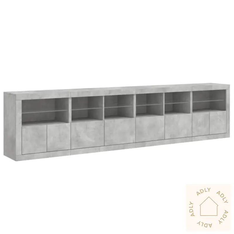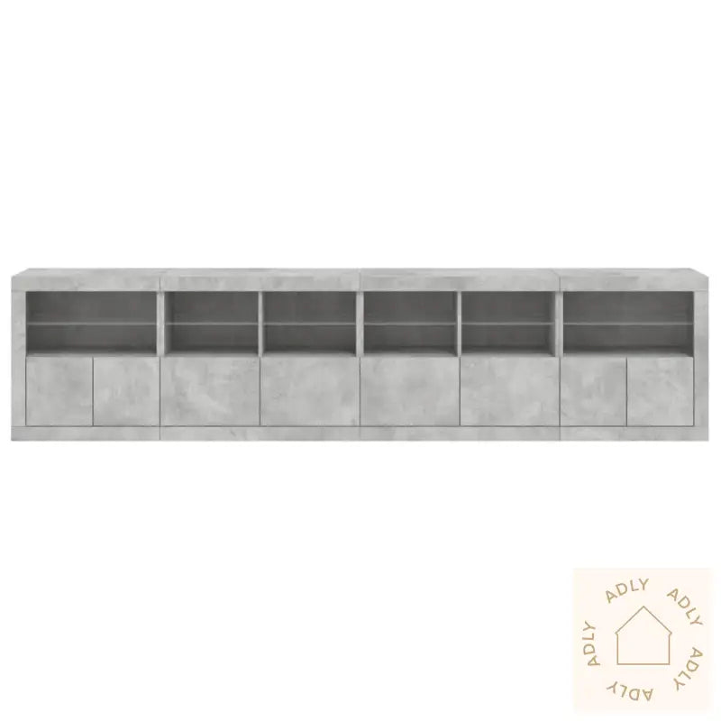 For sikker bruk må dette produktet forankres i veggen med medfølgende festeanordning, slik at du unngår at det velter. Sikre møblene for trygghet i hjemmet.Farge: betonggråMaterialer: konstruert tre, glassSamlet mål: 283 x 37 x 67 cm (B x D x H)Montering kreves: jaLeveransen inneholder:2 x skjenker: 60,5 x 37 x 67 cm (B x D x H)2 x skjenker: 81 x 37 x 67 cm (B x D x H)Legal Documents: