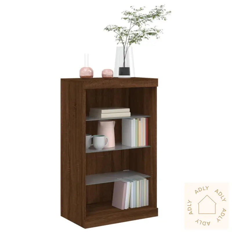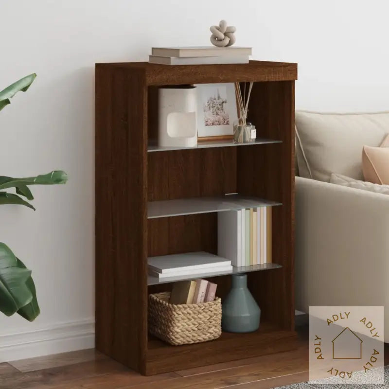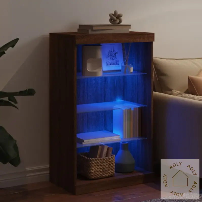 Dekorer rommet ditt på en moderne måte med denne stilige skjenken i brun eik med justerbare RGB LED-lys. Den passer sømløst sammen med forskjellige typer møbler til hjemmet, slik at du enkelt får et helhetlig og trendy uttrykk uansett interiørstil.
