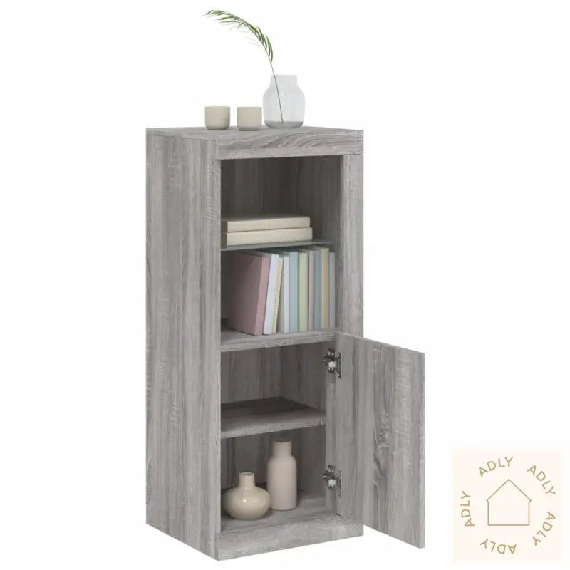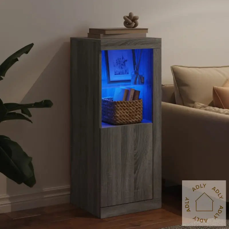 - RGB LED-lys: Det innebygde oppbevaringsskapet er utstyrt med fargerike RGB LED-lys. Lysene kan justeres og skifte mellom ulike fargetoner, slik at du til enhver tid kan skape akkurat den stemningen du ønsker hjemme. Lysene kontrolleres enkelt via brukervennlige menyer og kan også stilles inn på automatisk endring, noe som gir ekstra liv til møblet og rommet.