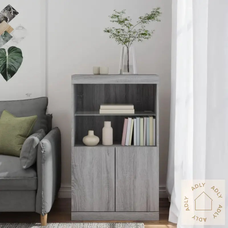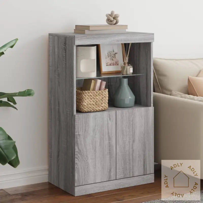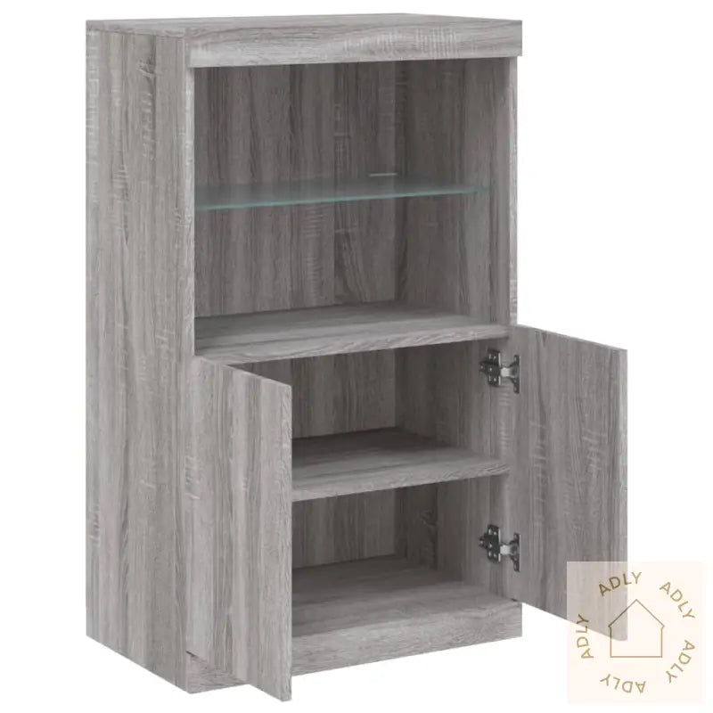 Slitesterkt materiale: Skjenken er laget av konstruert treverk av høy kvalitet. Dette materialet gir en glatt og stilren overflate, og sørger for styrke, stabilitet og motstandsdyktighet mot fuktighet – ideelt for langvarig bruk.Rikelig med lagringsplass: Med god plass inni buffeen kan du holde magasiner, bøker, fjernkontroller og småting pent samlet og lett tilgjengelig. Dette hjelper deg å holde rommet ryddig og organisert, spesielt i hjem med flere forskjellige møbler eller hyllesystemer.Visningsmuligheter: Plasser dine favorittdekorasjoner, bilder eller en grønn potteplante på toppen av skjenken for å fremheve personlig stil og skape et hyggelig miljø.RGB LED-lys: Skap stemning med de levende RGB LED-lysene i oppbevaringsskapet. Du kan selv tilpasse både farge og innstilling via en brukervennlig meny – bytt farger etter humør, eller la lyset justeres automatisk for ekstra wow-effekt når du inviterer gjester.Advarsel: