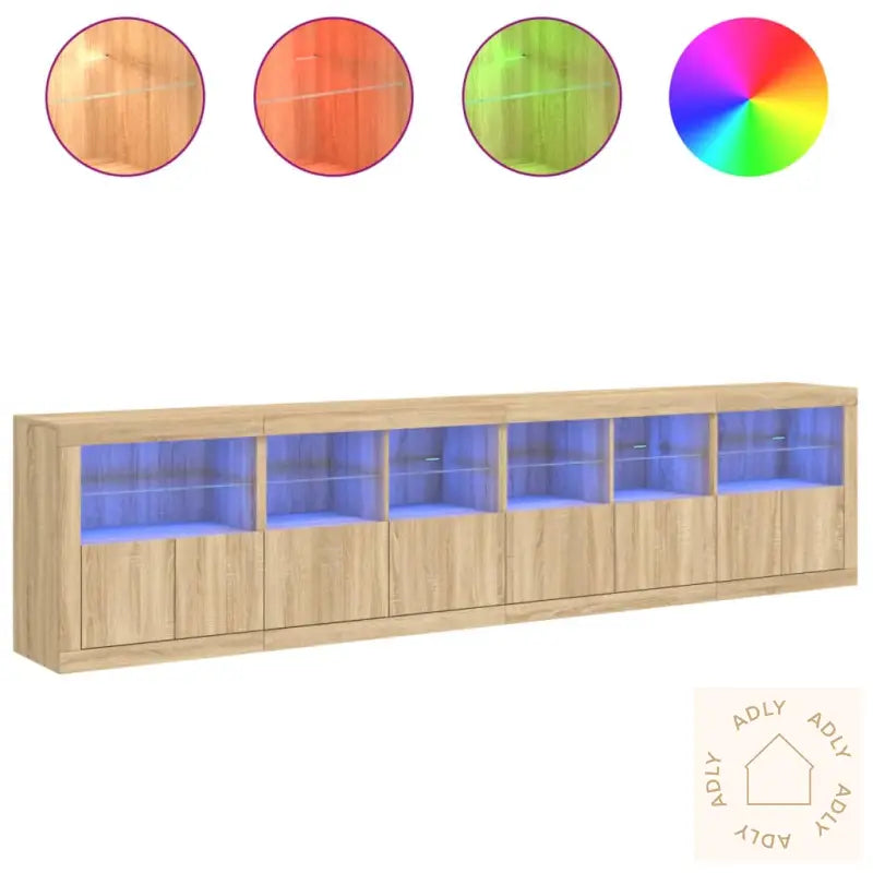 Dekorer rommet ditt med denne moderne skjenken med RGB LED-lys, en stilig og funksjonell løsning som passer perfekt sammen med møbler til hjemmet i enhver stil. Enten du foretrekker klassisk eller moderne innredning, vil denne sonoma eik-skjenken enkelt gli inn og fremheve helheten.