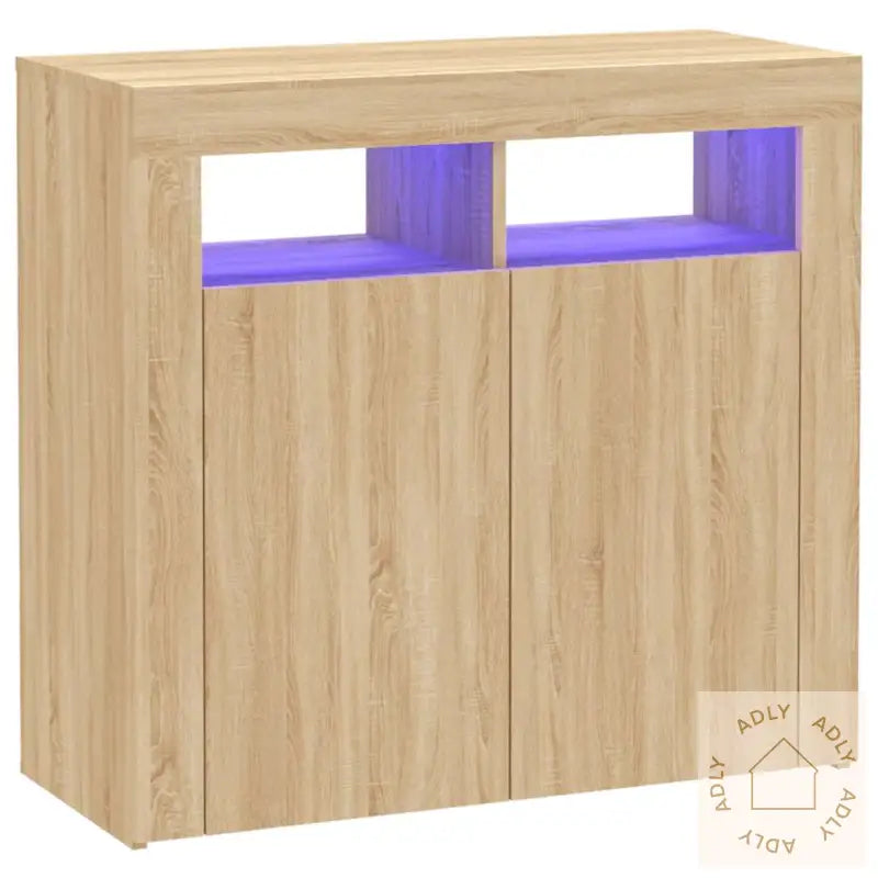Med de innebygde RGB LED-lysene kan du enkelt velge stemning – belysningen har flere fargealternativer og lyskombinasjoner, så du har full kontroll på atmosfæren, enten du skal slappe av eller ta imot gjester. LED-lysene fremhever skjenkens moderne og stilrene uttrykk, og passer spesielt bra i interiør med detaljer i sonoma eik.