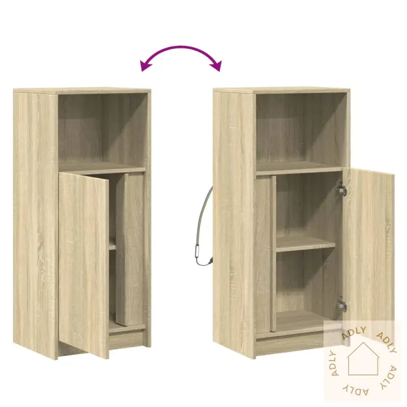 - Slitesterkt materiale: Skjenken er laget av kvalitetskonstruert treverk med en vakker finish i sonoma eik. Overflaten er glatt og enkel å rengjøre, og materialet gir både styrke, stabilitet og god motstand mot fuktighet – perfekt for langvarig bruk som en del av dine favorittmøbler til hjemmet.