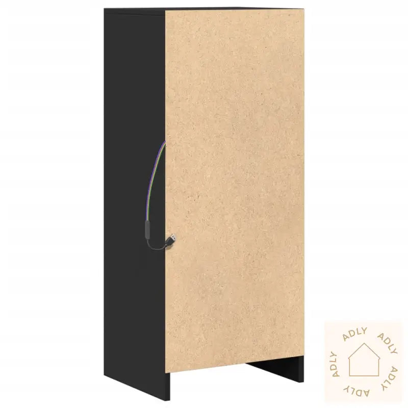 For sikkerhets skyld må du bruke den medfølgende festeanordningen for å hindre at skjenken velter.Farge: svartMaterialer: konstruert tre, glassStørrelse: 42,5 x 34 x 100 cm (L x B x H)Maksimal lastekapasitet totalt: 50 kgMaksimal bæreevne per laminat: 50 kgKrever monteringMed RGB LED-lysLegal Documents: