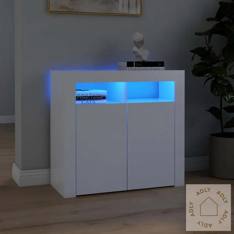 Denne skjenken med RGB LED-lys og minimalistisk design gir ikke bare et moderne, men også svært dekorativt preg på hjemmet ditt—et perfekt supplement til andre møbler til hjemmet eller sammen med bokhyller og stående hyller.