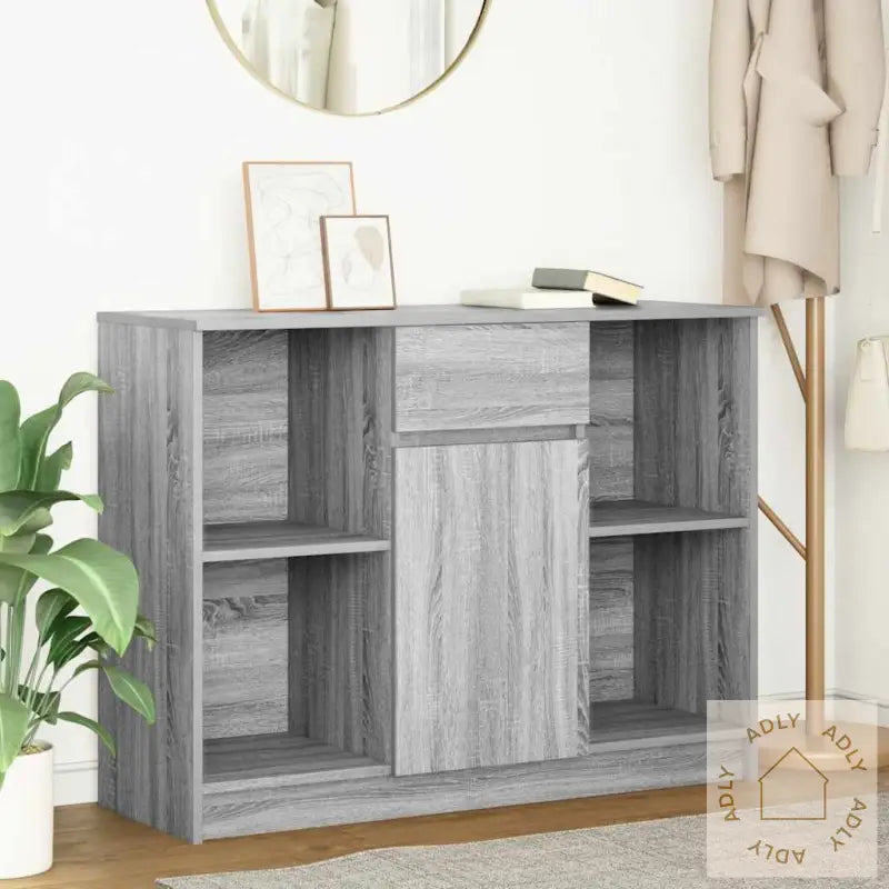 Farge: grå sonomaMateriale: konstruert treMål: 101 x 35 x 76 cm (B x D x H)Antall dører: 1Antall skuffer: 1Antall hyller: 2Totalt maks. vektkapasitet: 60 kgMaks. vektkapasitet på hylle: 20 kgMaks. vektkapasitet på skuffen: 5 kgMontering kreves: ja