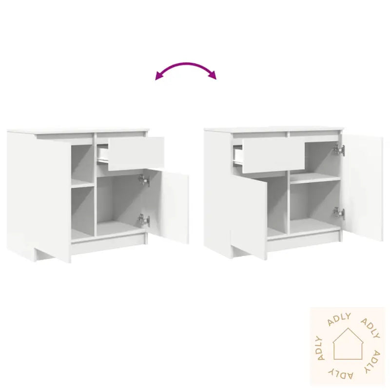 Tilpassbar installasjon: Monteringen er fleksibel: Du kan velge om skuffen og den minste skapdøren skal stå til venstre eller høyre, slik at skjenken enkelt tilpasses ditt rom og behov. Perfekt hvis du ønsker personlig preg og praktiske løsninger i hverdagen.