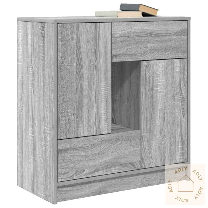 Stabilt og slitesterkt materiale: Skjenken er laget av konstruert tre, et materiale kjent for sin høye holdbarhet, stabile konstruksjon og jevne overflate. Materialet tåler både fukt, vridning og sprekker, noe som betyr at denne skjenken vil holde seg pen og robust selv ved daglig bruk.Rikelig med lagringsplass: Med både dører og skuffer får du god plass til å organisere alt fra servise til småting. De lukkede skapdørene beskytter eiendelene dine, mens skuffene gir enkel tilgang til det du bruker ofte. Hver skuff gir god plass, så selv større gjenstander kan lagres trygt og tilgjengelig.Robust toppoverflate: Den solide bordplaten gir en trygg flate for pynt, bøker, lamper eller servering, og tåler hverdagsbruk uten problem. Overflaten passer like godt til dekorative detaljer som til praktisk oppbevaring av det du trenger lett tilgjengelig.Allsidig bruk: Den moderne skjenken er fleksibel og tilpasningsdyktig – bruk den i stuen sammen med andre møbler, som ekstra oppbevaring i spisestua, eller som en smart løsning i gangen. Med sitt stilrene design passer den til flere interiørstiler og gjør det lett å fornye plassen din.Enkel å vedlikeholde: Den slette, motstandsdyktige overflaten gjør det lett å holde skjenken ren – tørk bare over med en fuktig klut ved behov. Mindre tid på vedlikehold gir deg mer tid til å nyte hjemmet ditt.Advarsel: