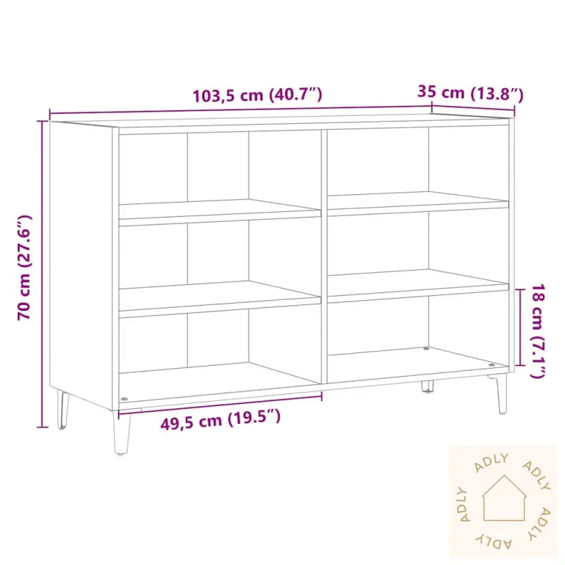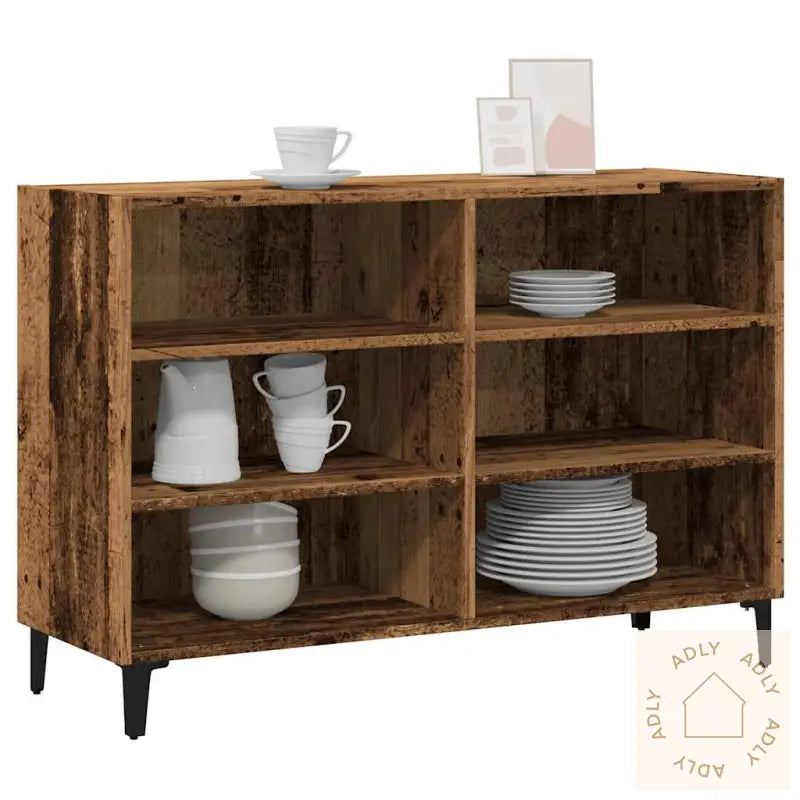 Stabilt og slitesterkt materiale: Skjenken er laget av konstruert tre, et materiale som er kjent for å vare lenge. Overflaten er glatt og enkel å tørke ren, og materialet tåler fuktighet, vridning og sprekker, så her får du et produkt som sikrer stabilitet og holder seg pent i mange år.Rikelig med oppbevaringsplass: De seks åpne rommene gir mye plass til både nødvendigheter, pynt og annet du vil ha lett tilgjengelig. Det er lett å holde orden på alt fra bøker til småting, slik at rommet ser ryddig ut.Solid bordplate: Den solide bordplaten gir mulighet for ekstra dekor – sett frem fotoalbum, grønne planter eller personlige pyntegjenstander for å gjøre skjenken til et blikkfang i rommet.Treføtter: Treføttene bidrar til et naturlig, lunt preg og en følelse av kvalitet. Samtidig sikrer de stabilitet, slik at skjenken står trygt på gulvet og passer sammen med alle typer interiør.Metallføtter: For et litt annerledes uttrykk kan du velge metallføtter. Disse gir skjenken en moderne touch og er designet for å sikre stabilitet slik at den tåler daglig bruk.Enkelt å vedlikeholde: En glatt overflate betyr at skjenken kan rengjøres raskt og enkelt med en fuktig klut, perfekt når du vil bruke tiden din på andre ting enn vedlikehold av møbler til hjemmet.Advarsel:
