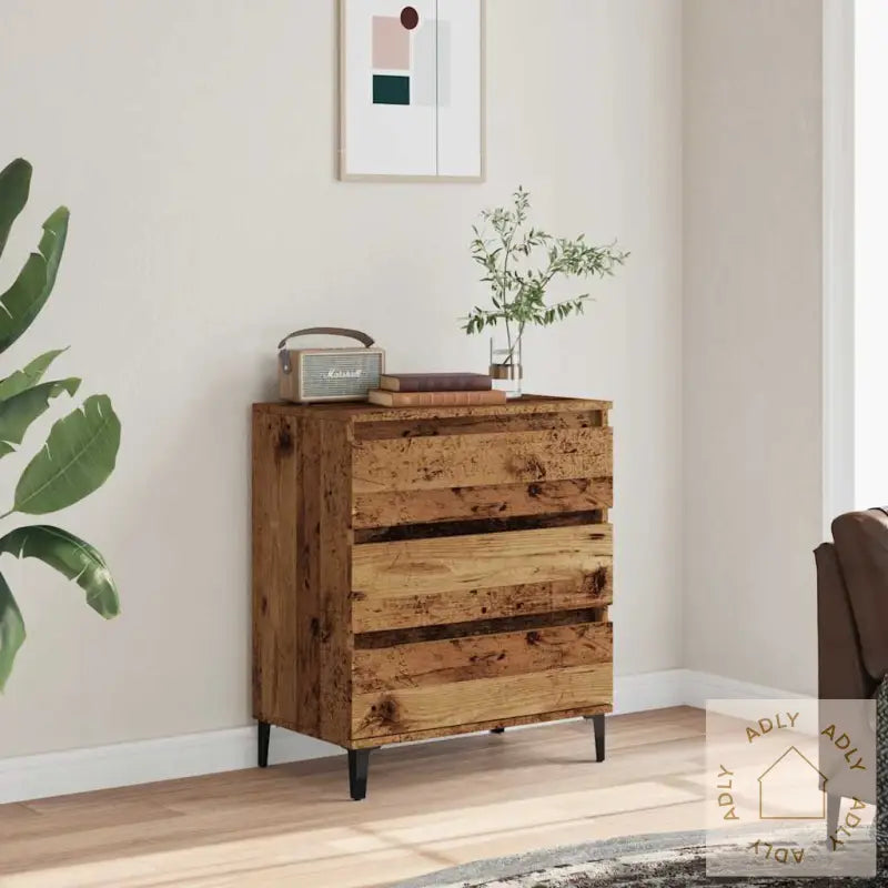 For å forhindre at produktet velter, må det festes sikkert til veggen med den medfølgende festeanordningen.Farge: gammelt treMateriale: konstruert treMål: 60 x 35 x 70 cm (B x D x H)Maks vektkapasitet (totalt): 60 kgMed 3 skufferMontering kreves: ja