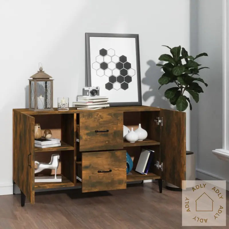 Premium materiale: Skjenken er laget av konstruert tre som har en jevn, fin overflate. Dette materialet er kjent for sin styrke, stabilitet og gode motstand mot fukt – perfekt for deg som ønsker langvarige møbler som også er lette å holde pene.