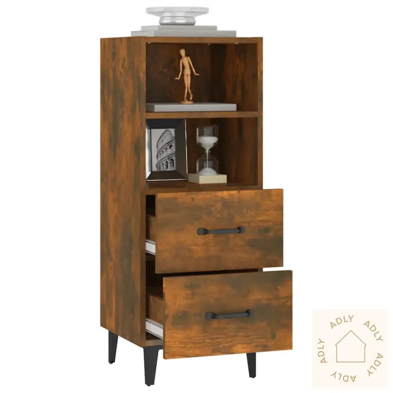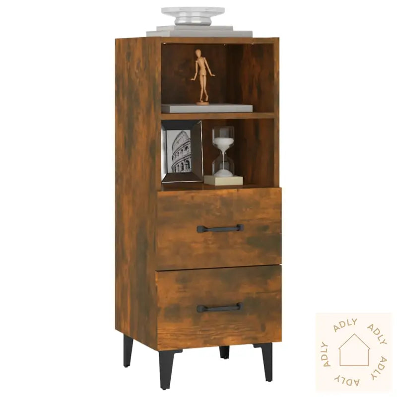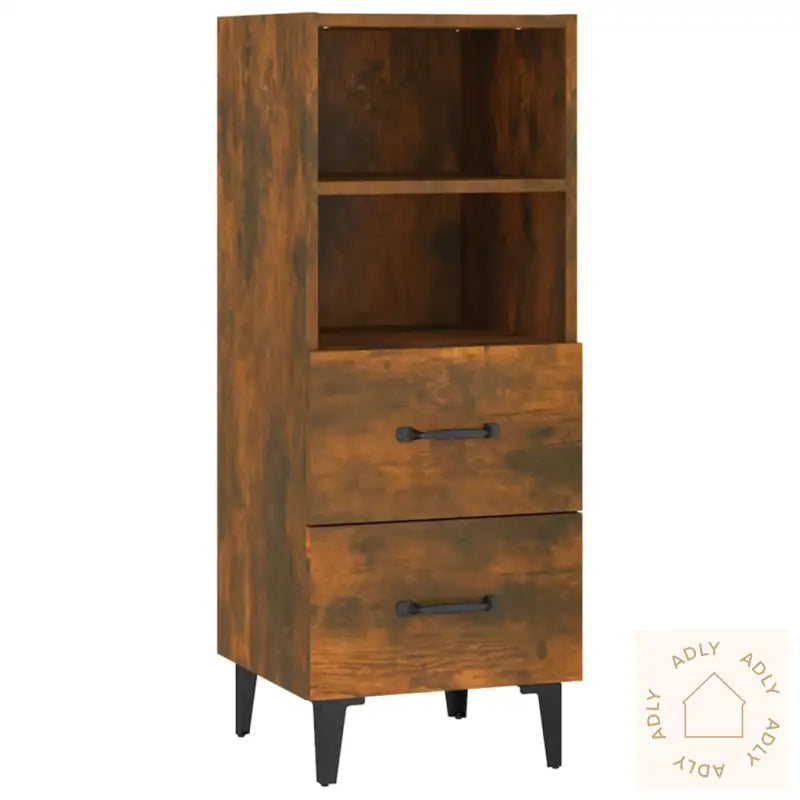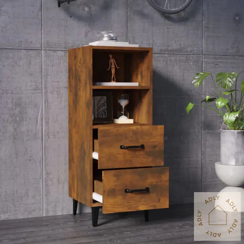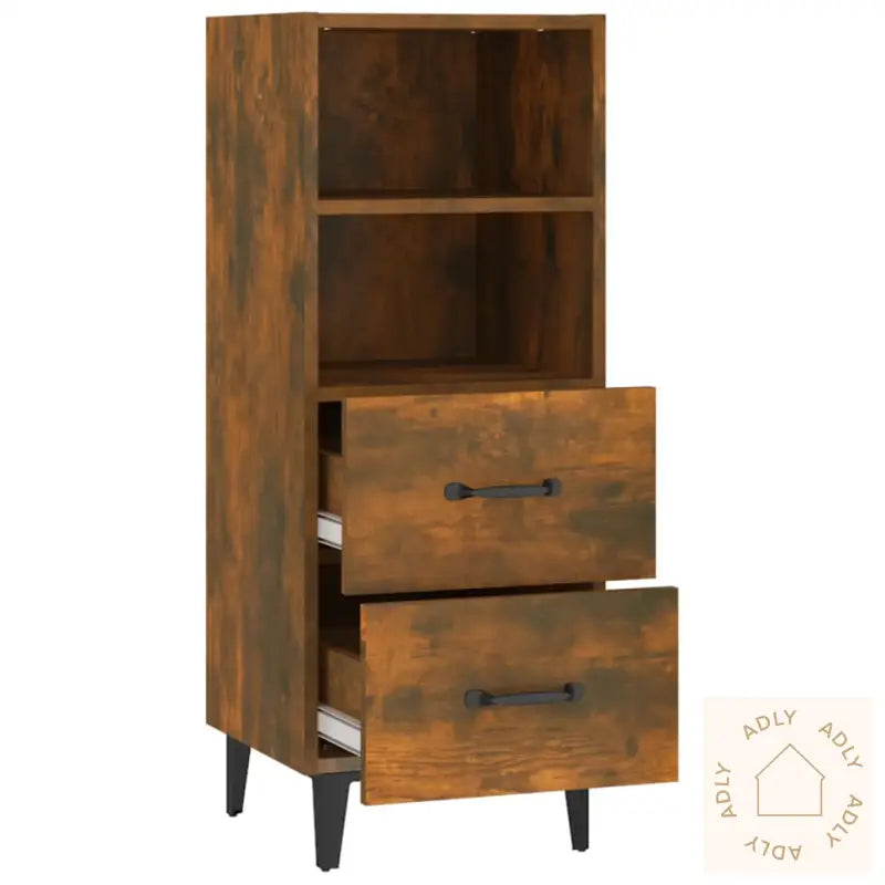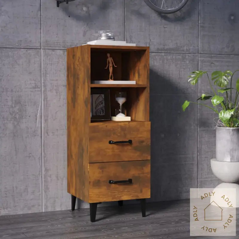 For å forhindre at produktet velter, må de medfølgende festemidlene for vegg brukes slik at du har trygge møbler til hjemmet – spesielt viktig hvis du har små barn eller kjæledyr.Farge: Røkt eikMateriale: Konstruert treMål: 34,5 x 34 x 90 cm (B x D x H)Legal Documents: