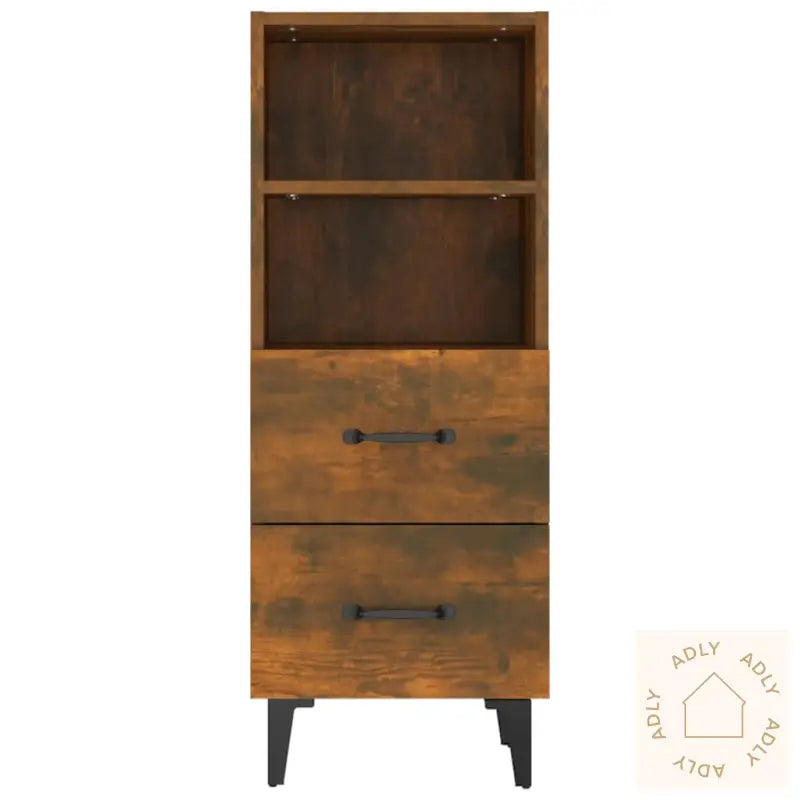 Solid materiale: Skjenken er laget av konstruert tre, et materiale kjent for sin høye kvalitet. Den glatte overflaten gir ikke bare en elegant finish, men den solide konstruksjonen sørger også for stabilitet og slitestyrke. Dette er et møbel som tåler daglig bruk i mange år framover.Rikelig med lagringsplass: Med to romslige skuffer og to åpne rom får du godt med plass til å oppbevare alt fra bestikk og servietter til viktige ting du bruker til daglig. Den smarte oppbevaringen bidrar til et ryddig hjem og gir deg rask tilgang til dine nødvendigheter.Solid overflate: Toppen på skapet gir deg en solid flate hvor du kan sette frem personlige gjenstander, dekorasjoner, vaser eller potteplanter. Perfekt om du ønsker å fremheve din stil eller vise frem favorittingene dine sammen med andre bokhyller og stående hyller i boligen.Montering er enkelt – alle deler og monteringsveiledning følger med i esken, så du kan sette skjenken sammen uten stress.