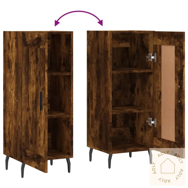 For å forhindre at skjenken velter, bør den sikres med medfølgende festeanordning til vegg.Farge: Røkt eikMaterialer: Konstruert tre, metallMål: 34,5 x 34 x 90 cm (L x B x H)Fleksibel dørinstallasjonMontering kreves: jaLegal Documents: