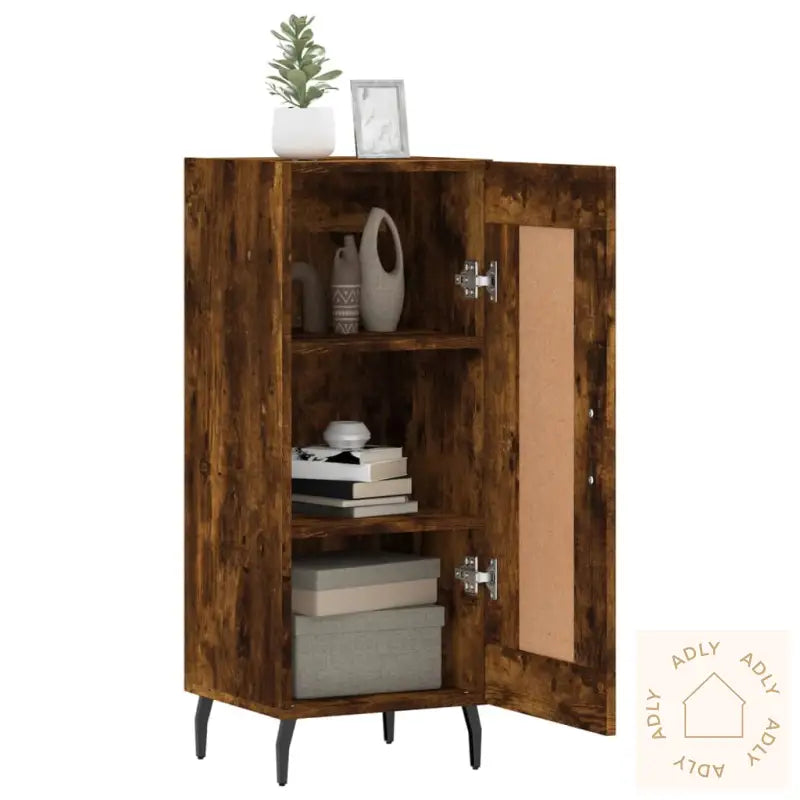 Slitesterkt materiale: Skjenken er laget av konstruert treverk av høy kvalitet som gir en glatt overflate, samt god styrke, stabilitet og motstand mot fukt. Dette gjør den til et solid valg blant møbler, og du får glede av skjenken i mange år fremover.Rikelig med oppbevaringsplass: Med tre rom får du masse plass til å organisere og oppbevare alt fra servise, bøker, klær eller andre ting du bruker til daglig. Du slipper rot og har alltid det meste lett tilgjengelig.Visningsmuligheter: Den romslige toppen fungerer utmerket for å vise frem favorittplantene dine, rammede bilder eller dekorative elementer du ønsker å trekke frem i hjemmet ditt. Kombiner gjerne med dine andre møbler for en personlig stil.Praktisk dør: Skapdøren skjermer eiendelene dine mot støv og holder ting unna synet – perfekt for oppbevaring av mindre estetiske ting. Det hendige håndtaket gjør skapet lett å åpne og lukke, akkurat når du trenger noe.Metallben: De robuste metallbena gir ikke bare ekstra god stabilitet, men setter også et moderne og avslappet preg på møbelet. Den stabile konstruksjonen sørger for at skjenken står støtt over tid, enten du bruker den alene eller sammen med andre hagemøbler eller interiørelementer.Advarsel: