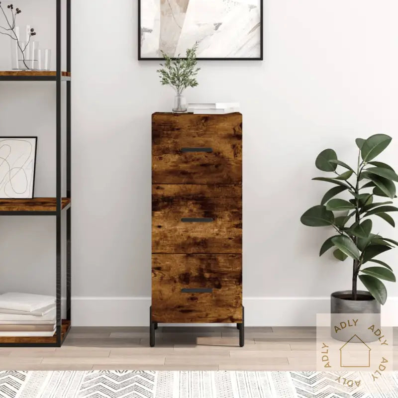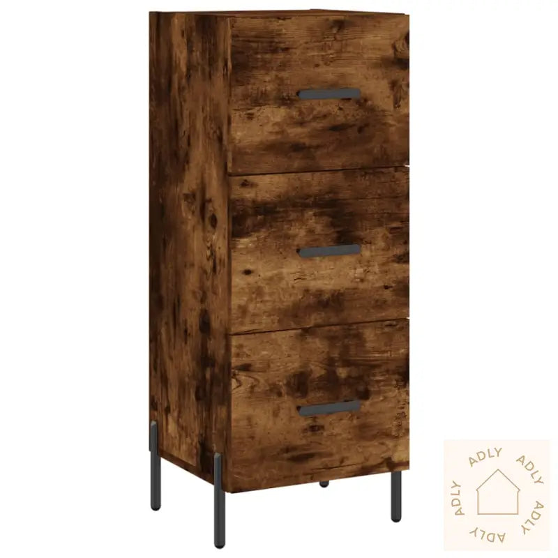 Slitesterkt materiale: Skjenken er laget av konstruert tre av høy kvalitet, noe som betyr at du får et møbel med glatt overflate, solid holdbarhet og god motstandsdyktighet mot fuktighet. Dette gir deg et møbel som holder seg pent lenge, selv ved hverdagslig bruk – et smart valg når du ønsker langvarig glede av dine møbler.Stilige metallben: De solide metallbena gir ekstra stabilitet til skjenken og løfter hele uttrykket med en moderne og rolig stil, noe som gjør at den glir sømløst inn sammen med andre møbler eller bokhyller og stående hyller i hjemmet.Rikelig lagringsplass: Skjenken har tre romslige skuffer, perfekte for å organisere og oppbevare småting, dokumenter eller det du trenger lett tilgjengelig i hverdagen. Det gir deg muligheten til å rydde bort rot og holde hjemmet ryddig og oversiktlig.Robust topplate: Toppen er stabil og sterk, så her kan du trygt plassere dekorative elementer, bilder eller potteplanter og virkelig fremheve din personlige stil blant dine øvrige møbler.Advarsel: