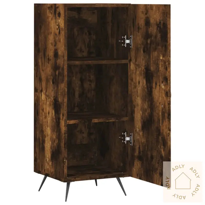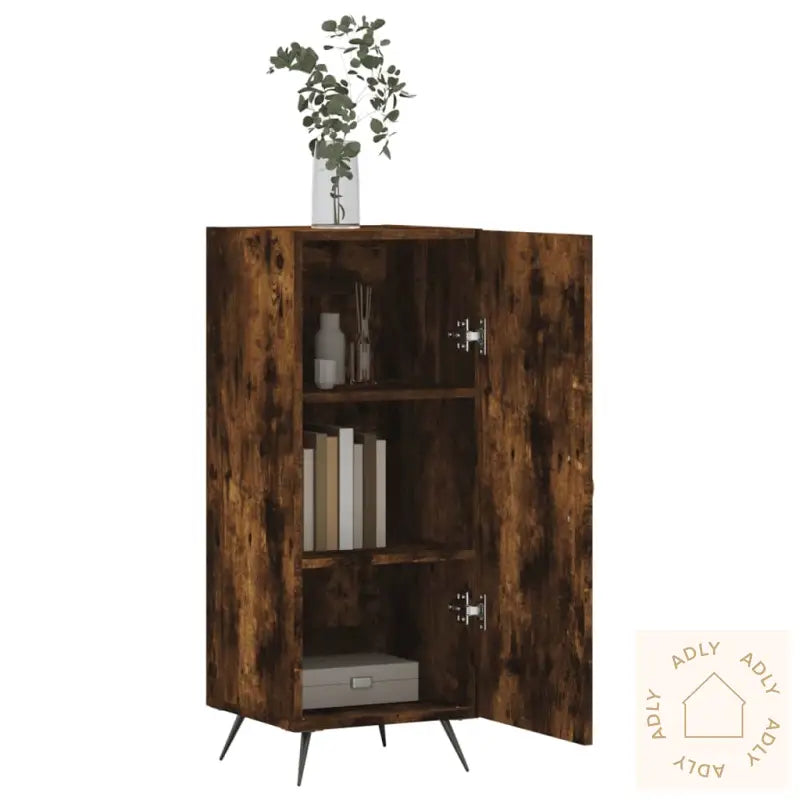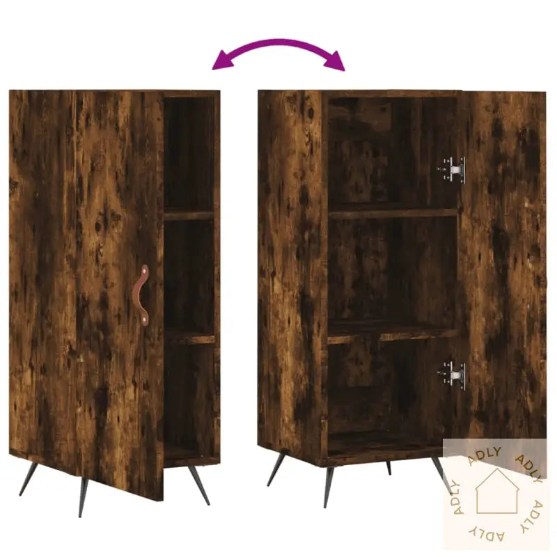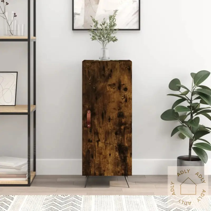 Slitesterkt materiale: Skjenken er laget i høykvalitets konstruert tre, som ikke bare har en fin og glatt finish, men også tåler daglig bruk over tid. Materialet gir deg styrke, stabilitet og motstand mot fukt, så du får et møbel til hjemmet som varer og holder seg pent år etter år.Metallben: De robuste bena i metall gir skjenken et moderne uttrykk, og sørger for god stabilitet. Metall detaljene bidrar til å gjøre denne skjenken til et unikt blikkfang blant dine andre møbler eller utendørsmøbler.God lagringsplass: Med tre store rom er det enkelt å holde orden på alt fra småting til servise. Du har alltid det du trenger lett tilgjengelig, samtidig som du kan skjule rot og beskytte tingene dine mot støv – perfekt for et ryddig og innbydende hjem.Stabil og robust topp: Øverst på skjenken får du en plass hvor du kan sette frem dekorative detaljer, fotorammer eller fine blomsterpotter. Toppen er solid og gir mulighet for å style rommet akkurat slik du vil.Praktisk dør: Bak døren kan du gjemme bort det du vil ha utenfor synet og holde det beskyttet fra støv. Det smarte håndtaket gjør at skapet er enkelt å åpne, slik at du raskt finner fram det du trenger.Advarsel: