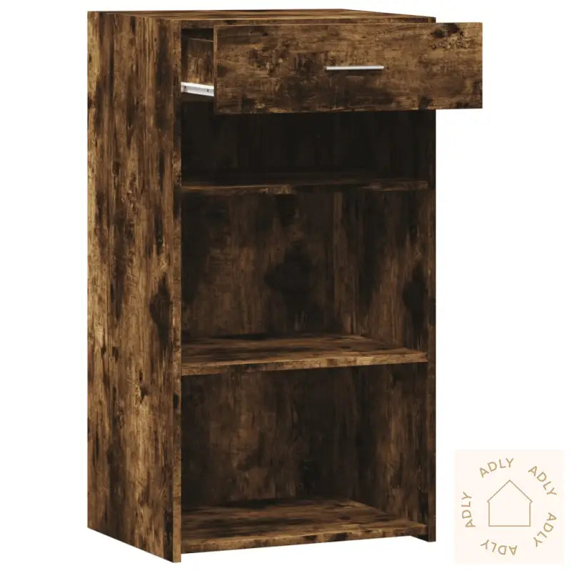 For å forhindre at produktet velter, må du alltid bruke den medfølgende festeanordningen for ekstra sikkerhet – spesielt viktig dersom du har barn eller husdyr.Farge: Røkt eik – gir en varm og elegant følelse til interiøret.Materiale: Konstruert tre som kombinerer slitestyrke med et stilrent utseende.Mål: 50 x 42,5 x 93 cm (B x D x H) – passer fint både i mindre og større rom.Montering kreves: JaLegal Documents: