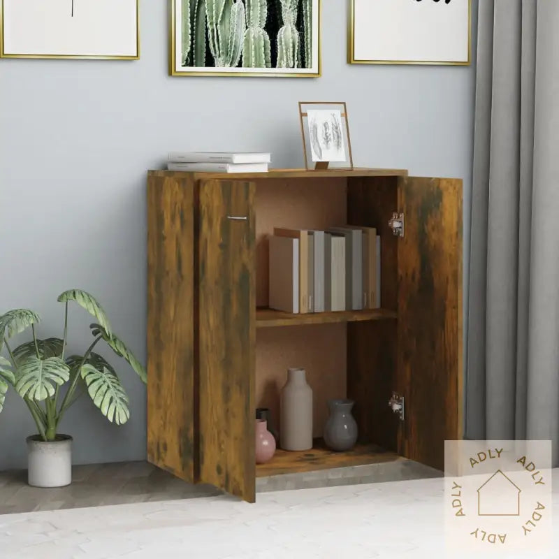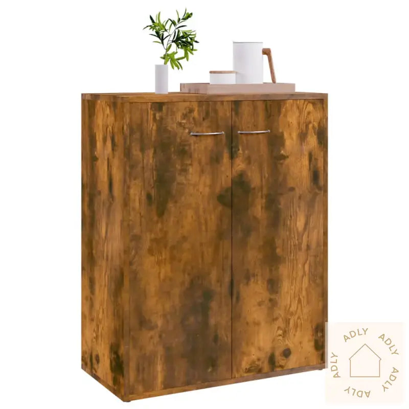 Farge: Røkt eikMateriale: Konstruert treMål: 60 x 30 x 75 cm (B x D x H)Enten du ser etter hagemøbler, praktiske møbler til hjemmet eller ønsker å oppgradere stua med et nytt blikkfang, er denne minimalistiske skjenken en god investering i stil og funksjon.