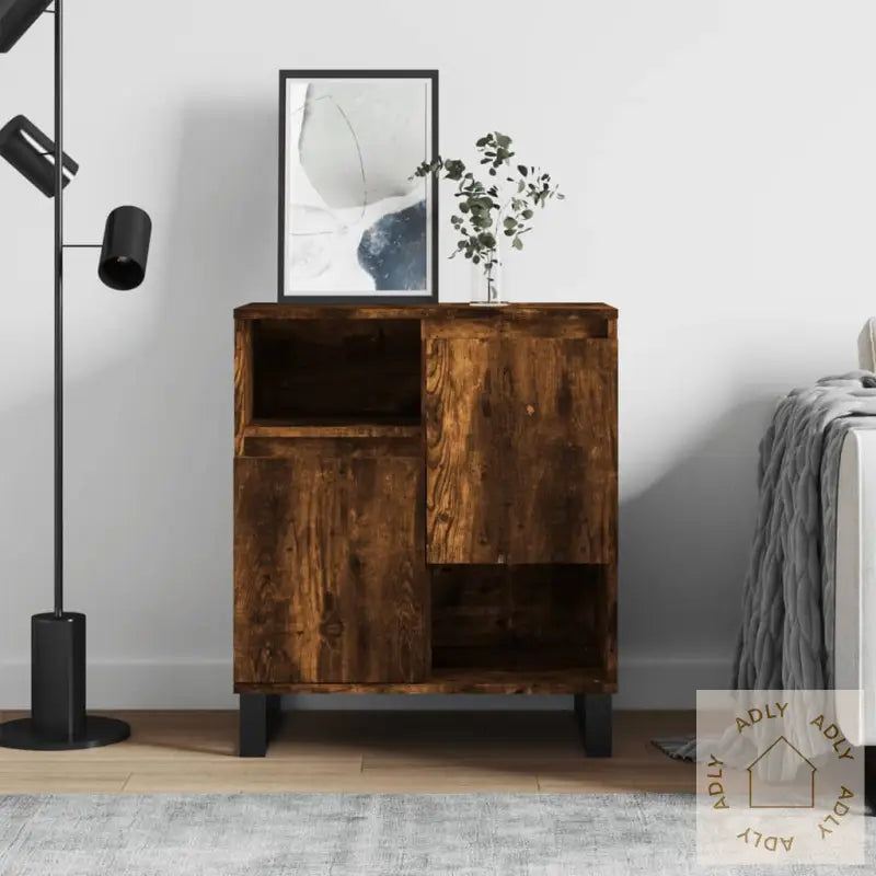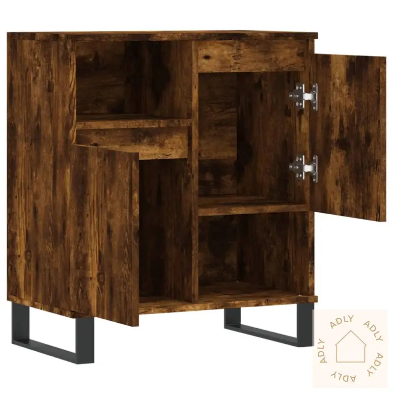 Slitesterkt materiale: Skjenken er laget av konstruert tre, kjent for sin solide kvalitet, jevne overflate og lang levetid. Materialet tåler fuktighet godt, og skaper et robust oppbevaringsskap som er enkelt å holde rent – bare tørk av med en fuktig klut når det trengs.Rikelig med lagringsplass: Med sine smarte hyller og rom byr buffetskapet på masse plass, slik at alle daglige nødvendigheter, servise, eller andre småting får en fast plass og er lett tilgjengelig. Perfekt for deg som ønsker å holde hjemmet ryddig og oversiktlig.Visningsfunksjon: Den stabile toppen av skjenken gir god mulighet til å vise fram dekorative interiørdetaljer, favorittbilder eller grønne planter – alt det lille ekstra som gir hjemmet personlighet og glass av stil. Slik blir møbelet like mye et utstillingssted som et praktisk oppbevaringsmøbel.Jernben: Skapet står stødig på sterke jernben som gir ekstra stabilitet og sørger for at dette møbelet varer lenge, selv ved aktiv bruk. Dette gir deg et robust møbel som også passer inn i mange ulike interiørstiler.Advarsel: