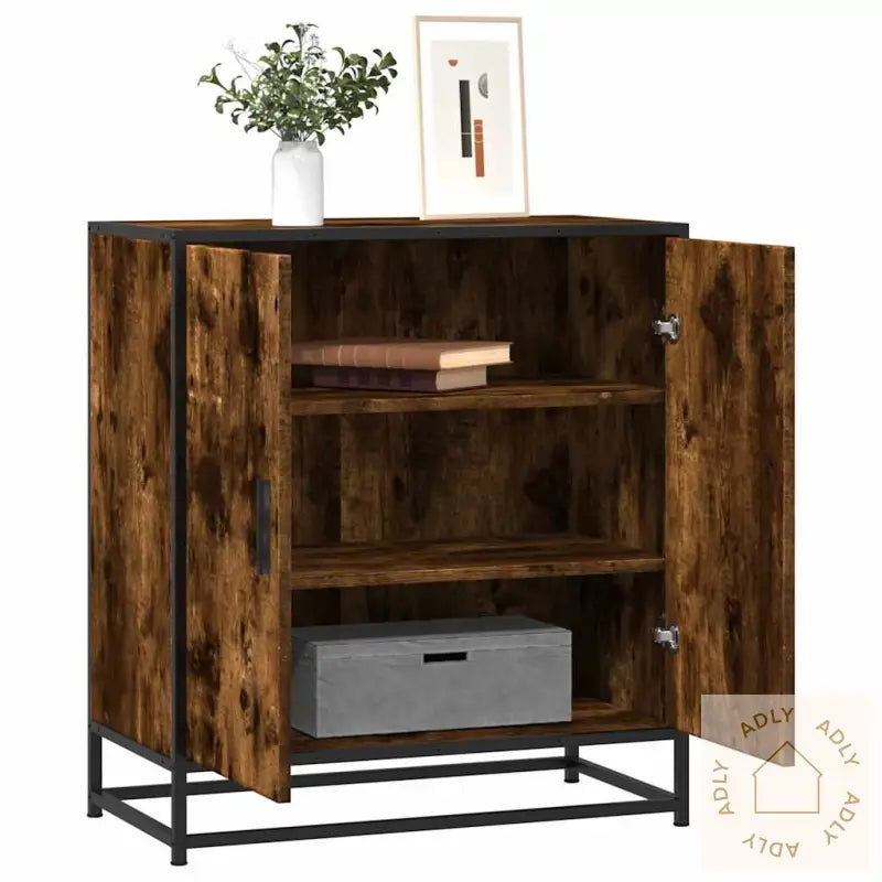 Den solide metallrammen gir skjenken lang levetid og sørger for stabilitet, samtidig som den tilfører en kul, industriell vibe til rommet ditt. Metallrammen tåler både daglig bruk og fuktighet, noe som gir ekstra holdbarhet og trygghet når du bruker den i hverdagen.Skjenken er laget av konstruert tre – kjent for å være robust, motstandsdyktig mot fuktighet og enkelt å holde rent. Dette gjør dette materialet ideelt i bokhyller og stående hyller så vel som praktiske oppbevaringsløsninger til hjemmet.Bak dørene finner du tre romslige hyller som gjør det enkelt å ha alt fra servise til bøker eller andre husholdningsartikler lett tilgjengelig og godt organisert. Her får du god plass uten at det tar stor plass i hjemmet.De pene håndtakene gir deg et komfortabelt og sikkert grep, noe som gjør det lett å åpne og lukke dørene. I tillegg tilfører de en ekstra touch til det moderne uttrykket.Metallføttene gir ekstra stabilitet og løfter designet ved å skape et stilig blikkfang mot gulvet, perfekt for deg som vil ha unike møbler til hjemmet ditt.Advarsel: