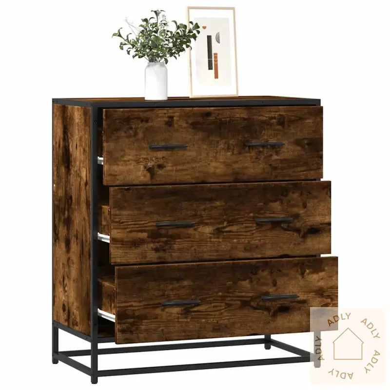 Stabil og langvarig ramme: Skapets solide metallramme gir interiøret en kul, industriell touch samtidig som den sørger for eksepsjonell holdbarhet. Du kan stole på at denne rammen holder seg stødig og tåler hyppig bruk, og metallets motstandsdyktighet mot korrosjon gjør skjenken spesielt egnet for norske forhold.Stabilt og slitesterkt materiale: Det konstruerte treverket er valgt for sin styrke og jevne finish. Dette materialet er motstandsdyktig mot fukt, vridning og sprekker, noe som gjør det ideelt for moderne møbler og sikrer at skjenken holder seg pen år etter år – perfekt for deg som ønsker kvalitetsmøbler til hjemmet.Rikelig lagringsplass: Med tre romslige skuffer får du god plass til å organisere alt fra servise og bestikk til småting og andre husholdningsartikler. Alt holdes oversiktlig og lett tilgjengelig, så du slipper rot og finner tingene når du trenger dem.Praktiske håndtak: De stilrene håndtakene gir ikke bare et komfortabelt grep når du åpner og lukker skuffene, men de setter også prikken over i-en på skjenkens uttrykk og gir et moderne løft til ethvert rom. Skapet passer like godt sammen med utendørsmøbler på vinterhagen som til andre møbler inne.Advarsel: