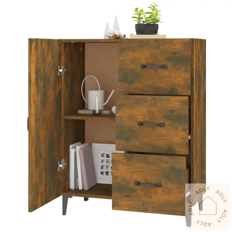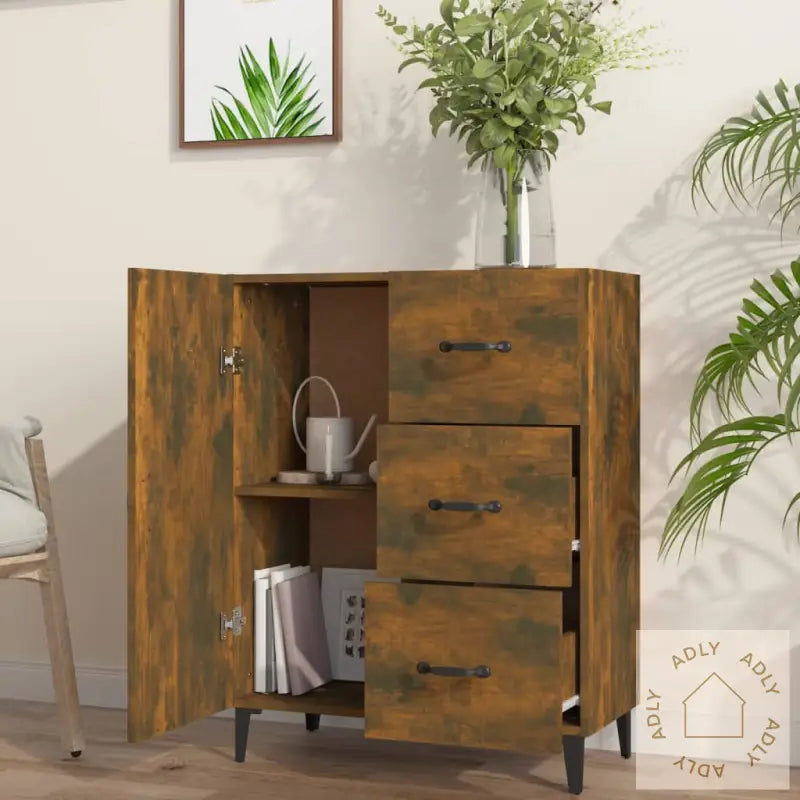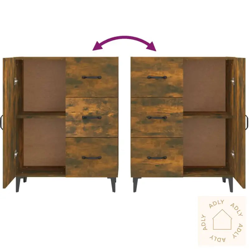 Premium materiale: Skjenken er laget av konstruert treverk av høy kvalitet. Overflaten er glatt, samtidig som materialet byr på solid styrke, stabilitet og god motstand mot fuktighet – dette sørger for langvarig holdbarhet og et tidløst uttrykk i hjemmet ditt.