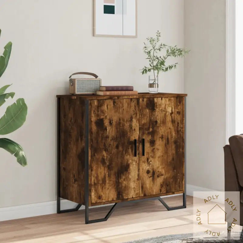 Holdbart materiale: Skjenken er laget av konstruert treverk av høy kvalitet som har en glatt overflate, samtidig som det gir god styrke, stabilitet og motstand mot fuktighet. Det betyr at skjenken holder seg fin lenge selv ved daglig bruk og behov for rengjøring.Metallben: De solide bena av metall gir et moderne preg på møbelet og gir ekstra stabilitet. Designet matcher perfekt med annen innredning, uansett om du har moderne eller klassiske møbler ellers hjemme.Rikelig med lagringsplass: Med godt med oppbevaringsplass blir det enkelt å holde orden på alt fra servise til bøker, pyntegjenstander og annet du vil ha lett tilgjengelig i stua eller spisestuen.Stabil og robust topp: Overflaten på skapet er solid, slik at du trygt kan plassere alt fra fotorammer og dekor til potteplanter og andre personlige detaljer. Det bidrar til å gjøre møbelet personlig, samtidig som det gir et ryddig uttrykk.Praktisk dør: Oppbevar tingene dine skjult bak de stilrene dørene for å unngå støv. Dørene er utstyrt med praktiske håndtak, så det er enkelt å åpne og lukke skapet når du trenger noe.Skjenken passer inn blant mange ulike typer møbler og kan kombineres med både hagemøbler og annen oppbevaring for å skape en helhetlig stil i hjemmet ditt.