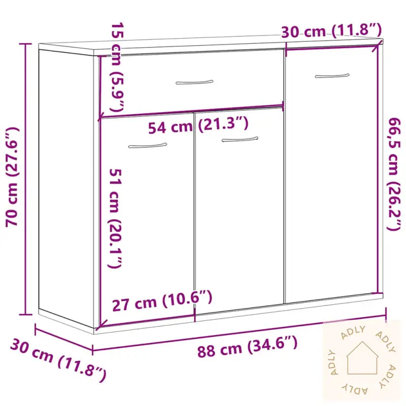 Farge: røkt eikMateriale: konstruert treStørrelse: 88 x 30 x 70 cm (B x D x H)Praktisk inndeling: 1 stor skuff og 3 dører gir fleksibel oppbevaringLegal Documents: