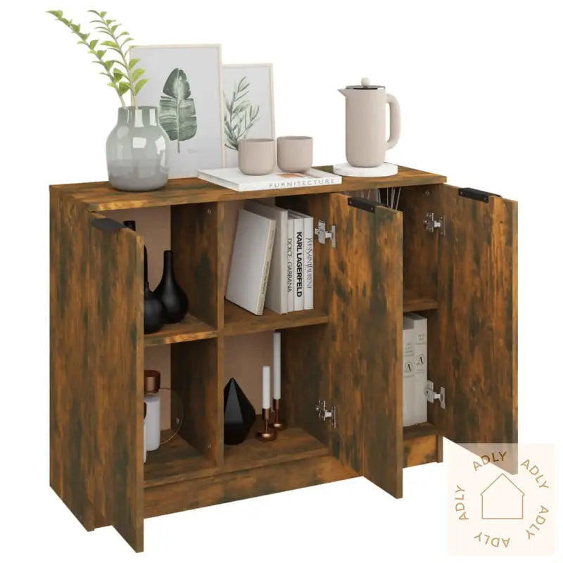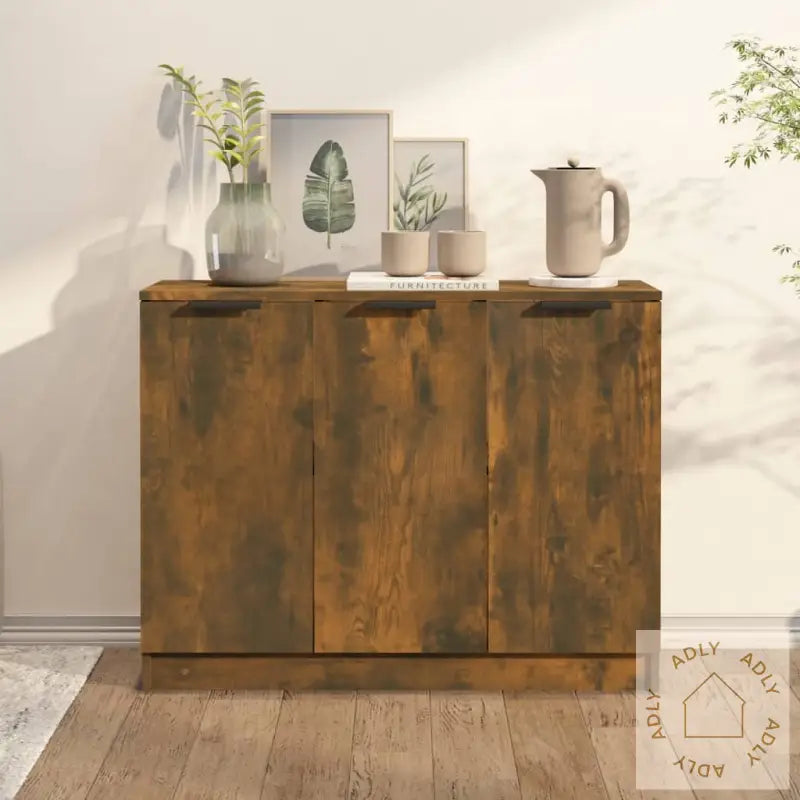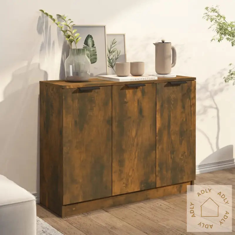Lett å rengjøre: Skjenken er laget av konstruert tre av høy kvalitet med en jevn, elegant overflate. Dette materialet gir både styrke, stabilitet og holdbarhet, samtidig som det tåler fuktighet – så møbelet holder seg pent lenge. Den glatte finishen gjør også at skapet enkelt kan tørkes av med en fuktig klut, noe som gjør vedlikehold superenkelt.Rikelig lagringsplass: Med tre praktiske dører får du godt med plass til å oppbevare alt fra servise og bøker til småting du vil ha lett tilgjengelig. Hold tingene dine oversiktlig og organiserte uten problemer, enten du setter skapet i stua, gangen eller på soverommet.Solid topp: Den solide toppen på dette oppbevaringsskapet gir deg ekstra plass til å sette frem dekorasjoner, fotorammer eller potteplanter. Den robuste overflaten tåler vekten av flere pyntegjenstander, og lar deg vise frem din personlige stil i hjemmet. Et ekte blikkfang blant dine møbler.ADVARSEL: