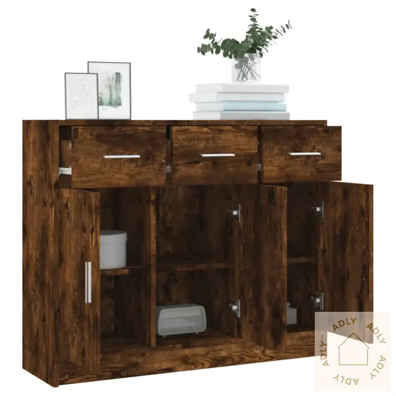 Slitesterkt materiale: Skjenken er laget av konstruert tre i høy kvalitet, noe som gir en jevn finish, god styrke og solid stabilitet. Materialet er motstandsdyktig mot fukt, noe som gjør denne oppbevaringsløsningen både robust og enkel å rengjøre – bare tørk over med en fuktig klut ved behov.