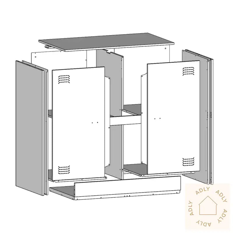 - Praktisk håndtak: Med to robuste metallhåndtak blir åpning og lukking av skjenken enkelt, samtidig som de gir skapet et ekstra stilrent og moderne preg.