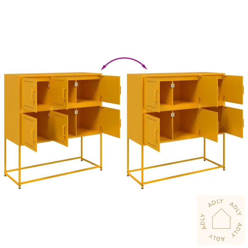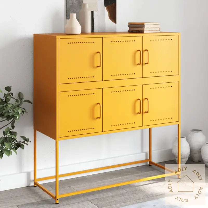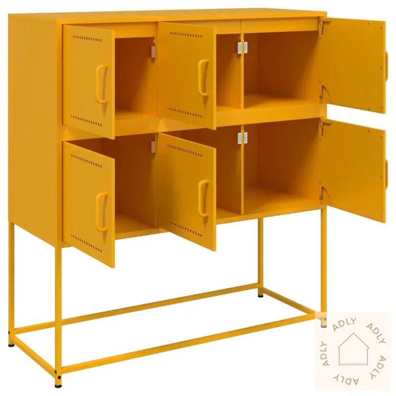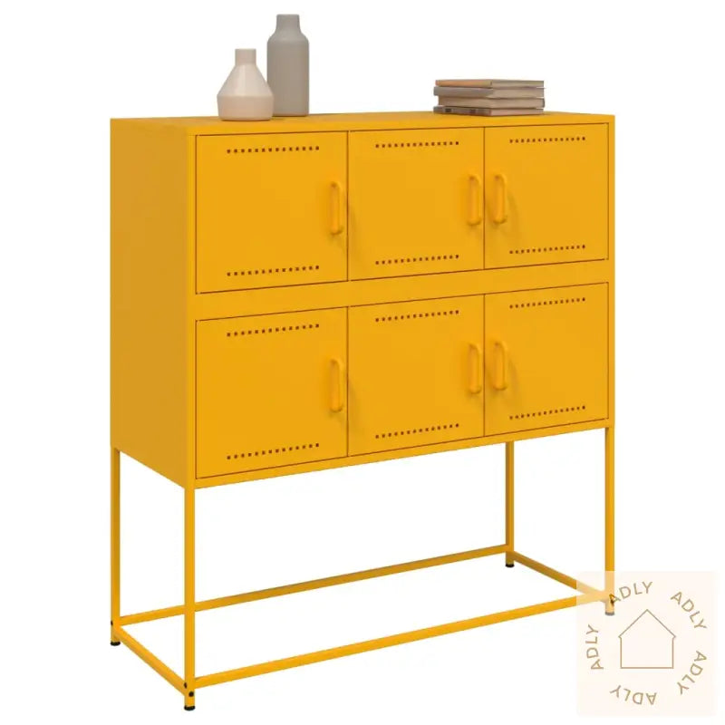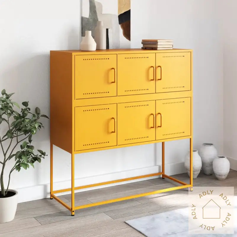 For å unngå at møbelet velter anbefales det å bruke festebeslag (følger ikke med), spesielt hvis du oppbevarer tyngre gjenstander øverst.Farge: SennepsgulMateriale: Kaldvalset stålMål: 100,5 x 39 x 107 cm (L x B x H)Med 6 dørerMontering kreves: ja