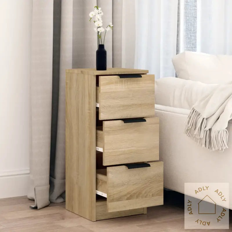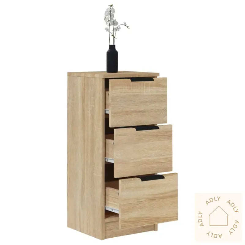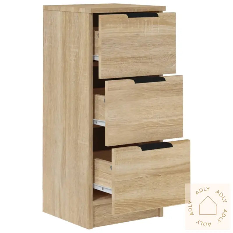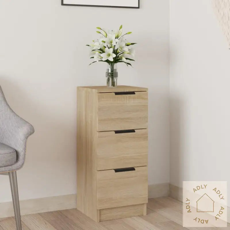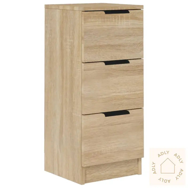 Stabilt materiale: Skapet er laget av høykvalitets konstruert treverk med en jevn og robust overflate som tåler daglig bruk. Materialet gir ikke bare styrke og stabilitet, men er også motstandsdyktig mot fuktighet, noe som gjør skjenken holdbar og enkel å vedlikeholde.Rikelig med lagringsplass: Med tre separate skuffer tilbyr sideskapet god plass til oppbevaring av småting, elektronikk, bøker og magasiner. Her får du enkelt organisert alt fra kontorrekvisita til DVD-er og multimediautstyr, slik at hjemmet alltid ser ryddig ut.Multifunksjonelt skap: Dette praktiske møbelet kan brukes på mange ulike måter – enten som oppbevaringsskap i stua, nattbord på soverommet eller som ekstra lagringsplass til bøker og samlinger. Det gjør skjenken svært anvendelig og fleksibel når du innreder hjemmet.Solid topp: Den solide oversiden gir deg mulighet til å vise fram pynt, bilder eller blomsterpotter for å gi interiøret ditt et personlig preg og skape stemning i rommet.Advarsel: