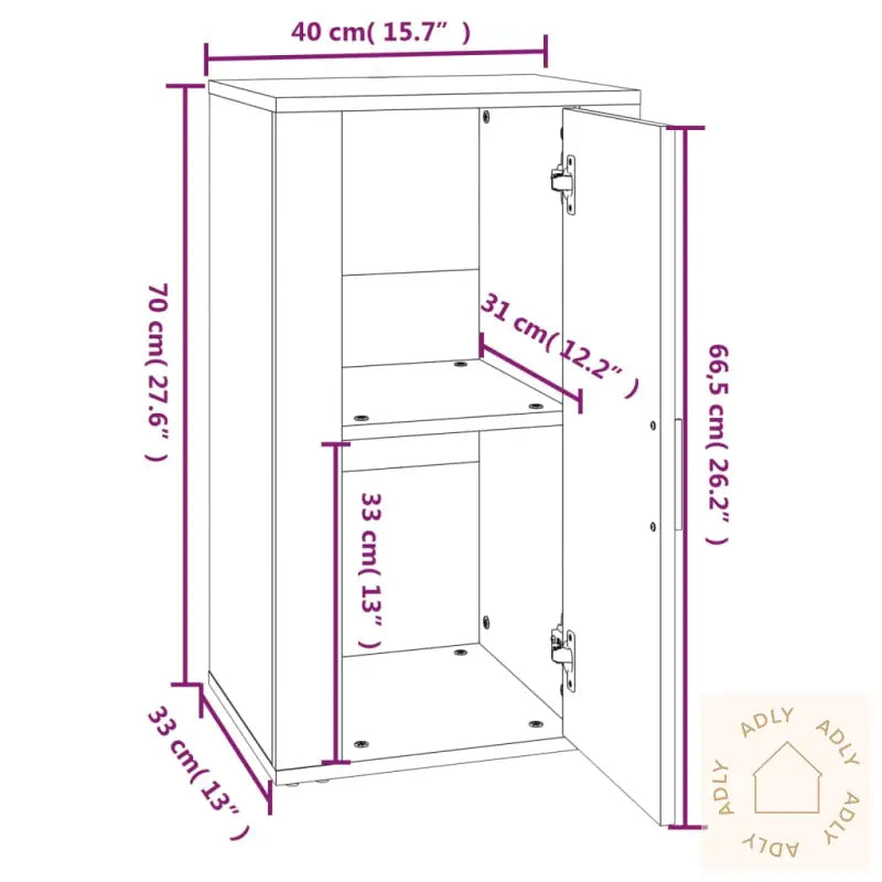 Slitesterkt materiale: Skapet er produsert i konstruert tre av høy kvalitet, noe som gir en glatt overflate med god styrke og stabilitet. Materialet gjør også at skjenken tåler daglig bruk og motstår fuktighet, så du får et solid møbel som varer lenge.Tilstrekkelig lagringsplass: Skjenken har romslige hyller innvendig, som gir deg god plass til oppbevaring av alt fra servise til bøker, klær eller andre nødvendigheter. Hold hjemmet organisert, samtidig som alt er lett tilgjengelig når du trenger det.Robust topp: Toppen av skapet har nok plass til at du kan sette frem dine favorittbilder, pyntegjenstander eller grønne planter. Den robuste overflaten er perfekt for å skape en personlig atmosfære og tilføre hjemmet ditt det lille ekstra.Praktisk design: Oppbevaringsskapet kommer med en dør som enkelt beskytter tingene dine mot støv og smuss, slik at alt ser ryddig ut – uten ekstra arbeid.Skapet leveres i den populære fargen sonoma eik, som gir et varmt, naturlig preg til rommet og passer godt sammen med andre møbler til hjemmet.