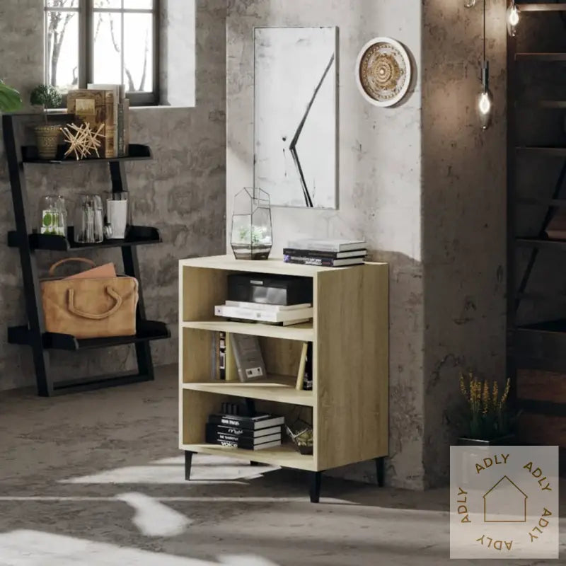 Denne skjenken er et flott valg når du ønsker å oppgradere interiøret med moderne møbler til hjemmet. Den har et stilrent utseende i sonoma eik som passer sømløst inn i ulike rom, enten det gjelder stue, entré eller soverom. Skjenken er laget av slitesterke sponplater, noe som gir styrke og lang holdbarhet selv ved daglig bruk, samtidig som metallbeina gir ekstra stabilitet. Dette gjør møbelet solid og pålitelig.