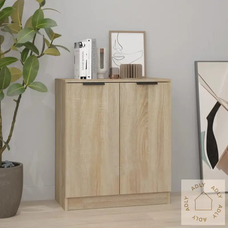 Premium materiale: Skapet er laget av konstruert tre, kjent for sin slitestyrke og stabilitet. Overflaten er glatt, lett å vaske over, og tåler fuktighet godt, noe som gjør dette møbelet både robust og enkelt å holde pent dag etter dag.Rikelig med oppbevaringsplass: Med smarte oppbevaringsrom har du gode muligheter til å organisere og gjemme bort alt fra servise til småting, så det alltid ser ryddig ut hjemme.Flerfunksjonell skjenk: Enten du vil bruke skjenken som konsollskap, highboard, eller bare som ekstra oppbevaringsplass, gir den solide toppen perfekte muligheter til å vise frem dekor, bilder eller potteplanter og gjøre sonoma eik ekstra innbydende.ADVARSEL: