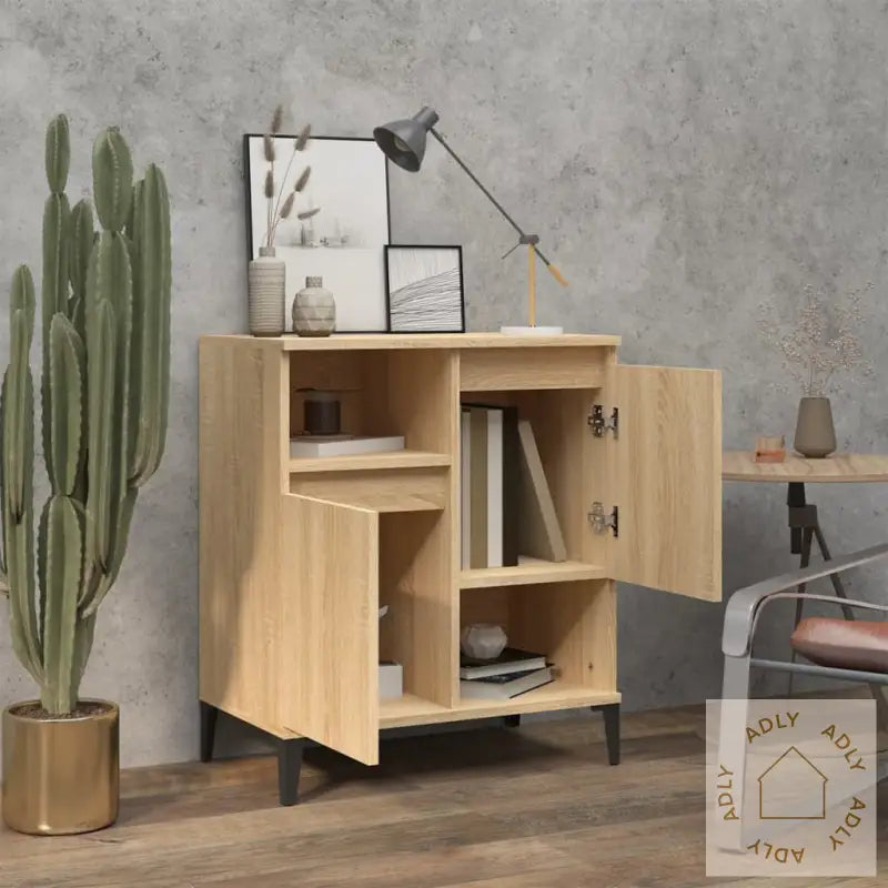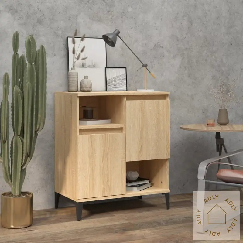 Denne klassiske skjenken i fargen sonoma eik kombinerer tidløst design med praktisk funksjonalitet, og passer perfekt som en del av dine møbler til hjemmet. Det gjennomførte og stilrene uttrykket gjør at den enkelt kan integreres i ulike interiørstiler.