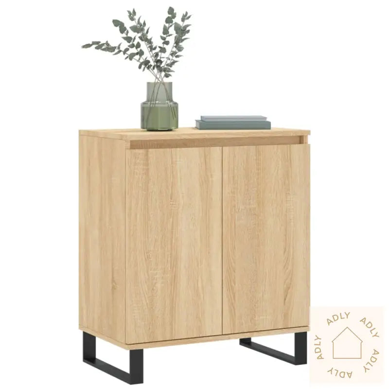 - Slitesterkt materiale: Skjenken er laget av konstruert tre i høy kvalitet med en glatt, flott overflate i sonoma eik. Dette materialet gir både styrke og stabilitet, samtidig som det er motstandsdyktig mot fuktighet. Det gjør at møbelet holder seg pent lenge og er enkelt å vedlikeholde – bare tørk over med en fuktig klut.