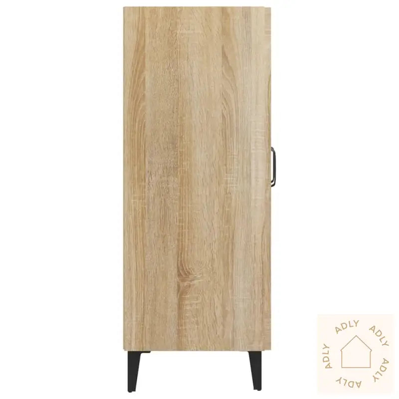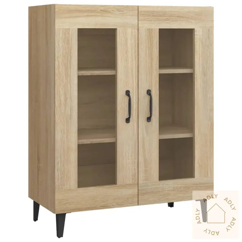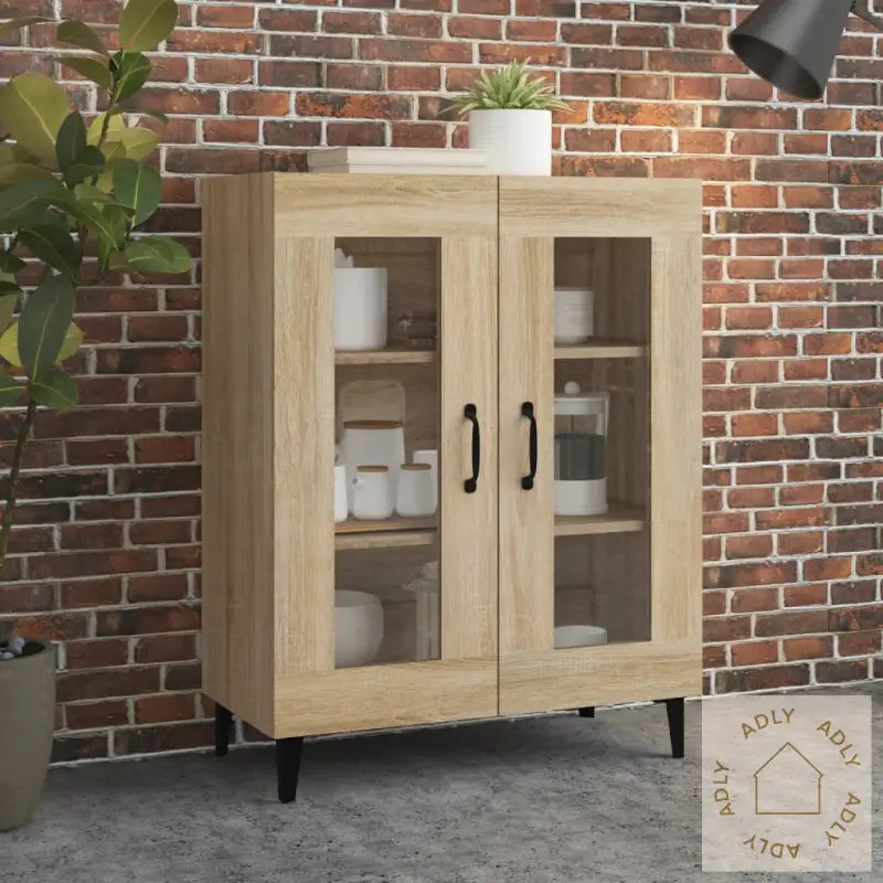 Solid materiale: Skjenken er laget av konstruert tre av høy kvalitet, noe som sikrer lang levetid, god stabilitet og motstandskraft mot fuktighet. Den glatte overflaten gjør rengjøring enkel og gir skapet et gjennomført, tidløst preg.Rikelig med lagringsplass: Med to romslige dører får du god plass til å organisere alt fra servise, bøker og pyntegjenstander til daglige nødvendigheter – holde hjemmet ditt ryddig har aldri vært enklere.Gjennomsiktige glassdører: Vitrineskapet har stilrene og gjennomsiktige glassdører, slik at du alltid har full oversikt over hva som er inni og lett finner fram til det du trenger. Glassdørene gir dessuten skapet et lyst og luftig uttrykk, og setter et elegant preg sammen med sonoma eik-finishen.Solid overflate: Topplaten av skapet har en robust konstruksjon og passer perfekt for å vise fram dine favorittdekorasjoner – enten det er vaser, potteplanter eller familieportretter – og gir et personlig preg til stua eller spisestua.Merk: