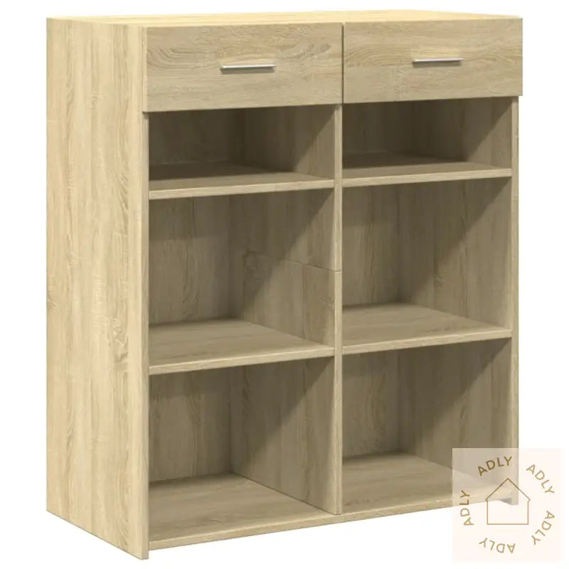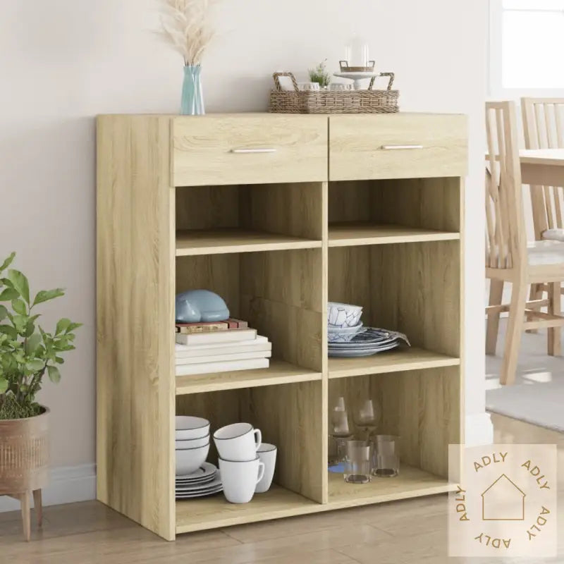 Holdbart materiale: Skjenken er laget av konstruert tre, som gir en robust konstruksjon med god stabilitet og lang levetid. Overflaten er glatt, lett å holde ren og tåler fuktighet, noe som gir deg funksjonelle møbler som varer lenge i hverdagsbruk.Praktisk oppbevaringsplass: Med 2 romslige skuffer får du god plass til å organisere diverse småting som papirer, nøkler, servietter eller andre nødvendigheter. Dette bidrar til å holde hjemmet ryddig og gir deg rask tilgang til det du trenger.Enkel vedlikehold: Skapets overflate gjør det enkelt å tørke bort støv og flekker med en fuktig klut, så du sparer tid på rengjøringen.Advarsel: